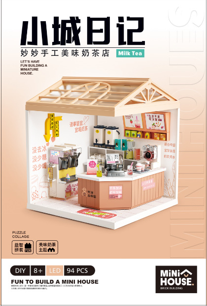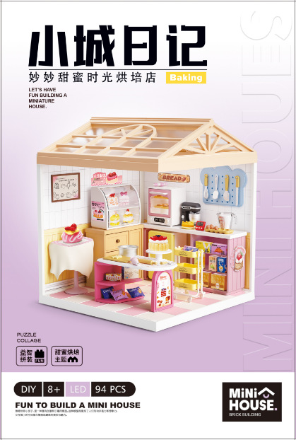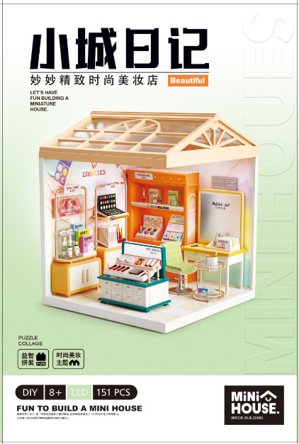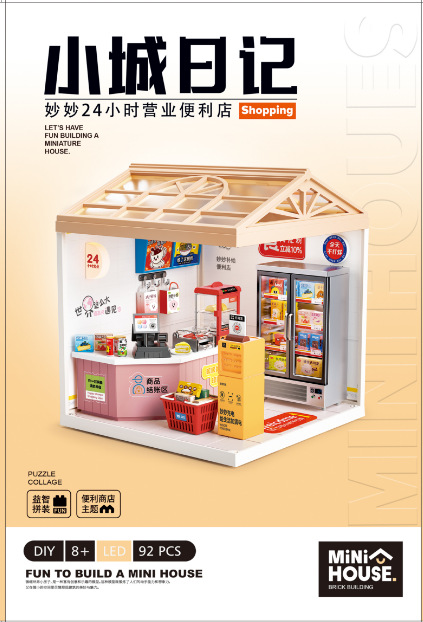 작은 마을 일기 조립 장난감 Miaomiao 시리즈 DIY 오두막 모델 빌딩 블록 장난감 3 차원 장식품 장난감 선물스토어 가기