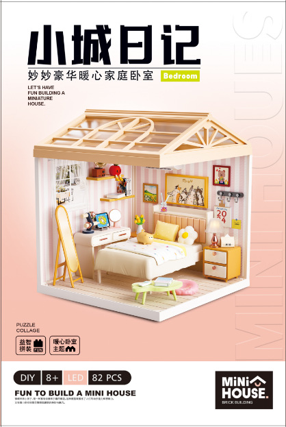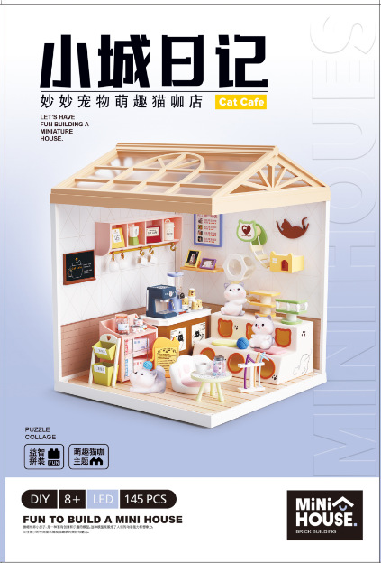 작은 마을 일기 조립 장난감 Miaomiao 시리즈 DIY 오두막 모델 빌딩 블록 장난감 3 차원 장식품 장난감 선물