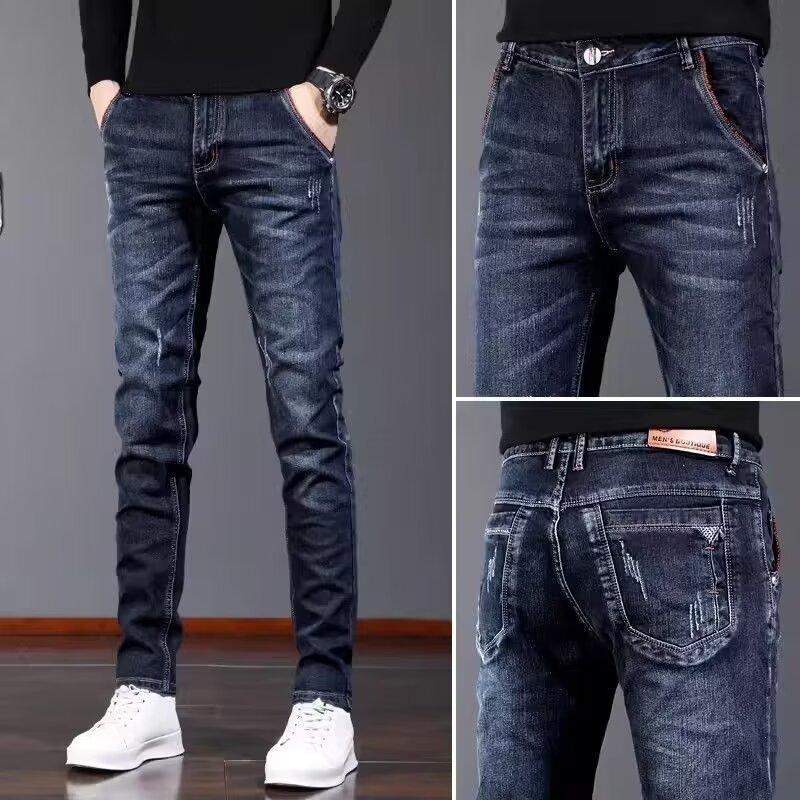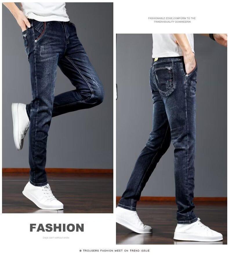 뉴 청바지 남자 2024 봄과 가을 슬림 핏 스키니 바지 남자 한국 스타일 청소년 트렌디 올 매치 캐주얼 남자 바지스토어 가기