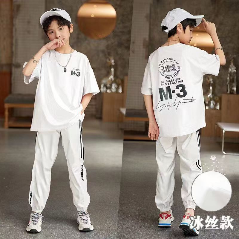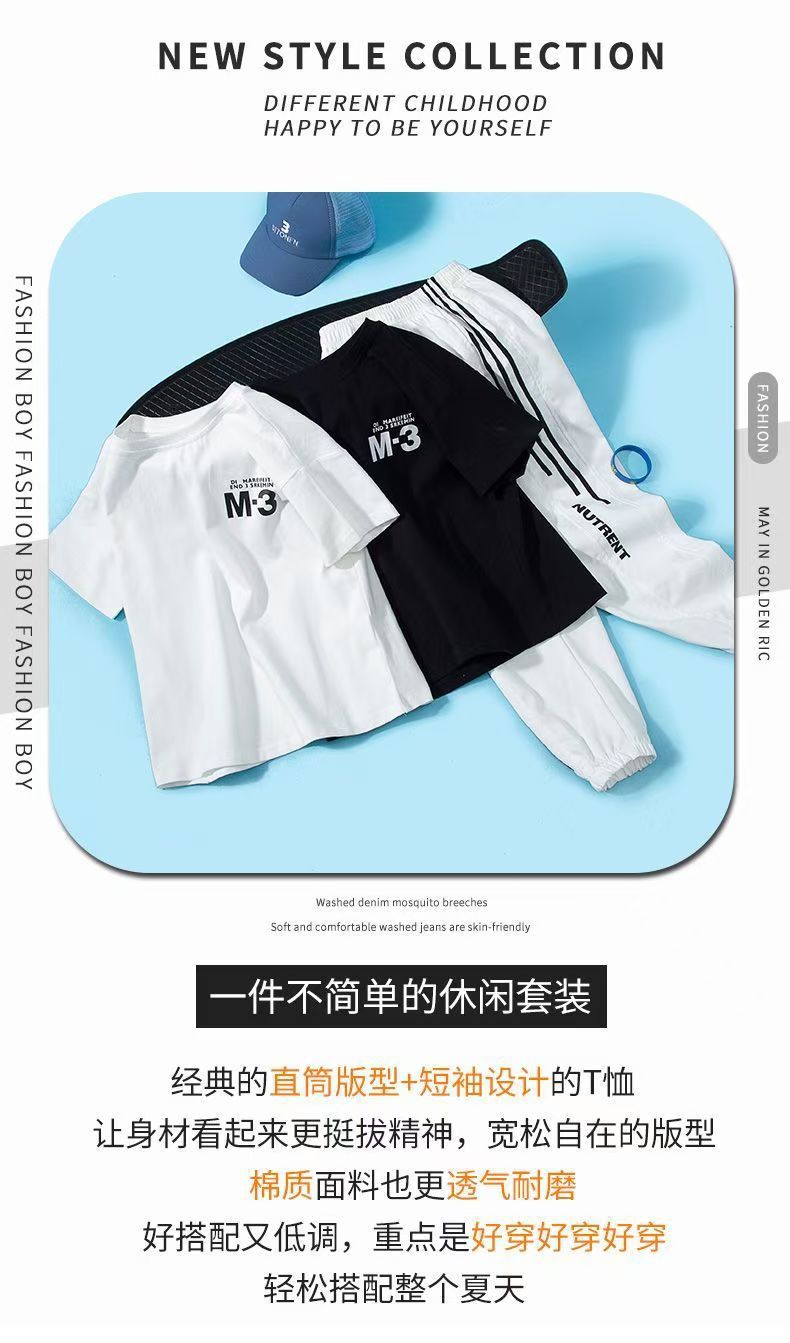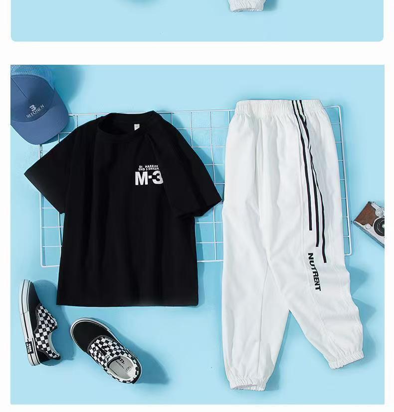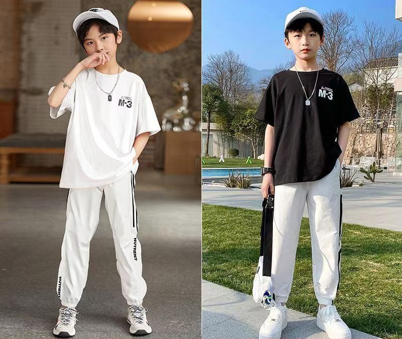 아동복 2024 새로운 소년 세트 여름 반팔 티셔츠 바지 소년 빠른 건조 바지 어린이 캐주얼 스포츠 커버스토어 가기