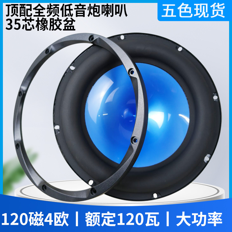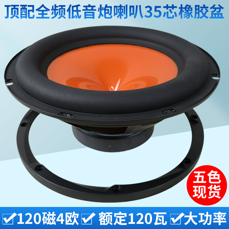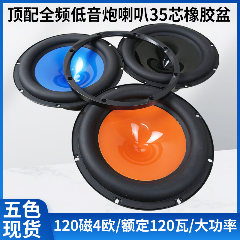 本链接是全频大功率橡胶盆喇叭,35芯4欧额定100W120磁重低音,工厂大功率类顶配产品,建议适用市面上高端一些的对管功放才能出更好效果,差的对管功放和集成功放带不动;