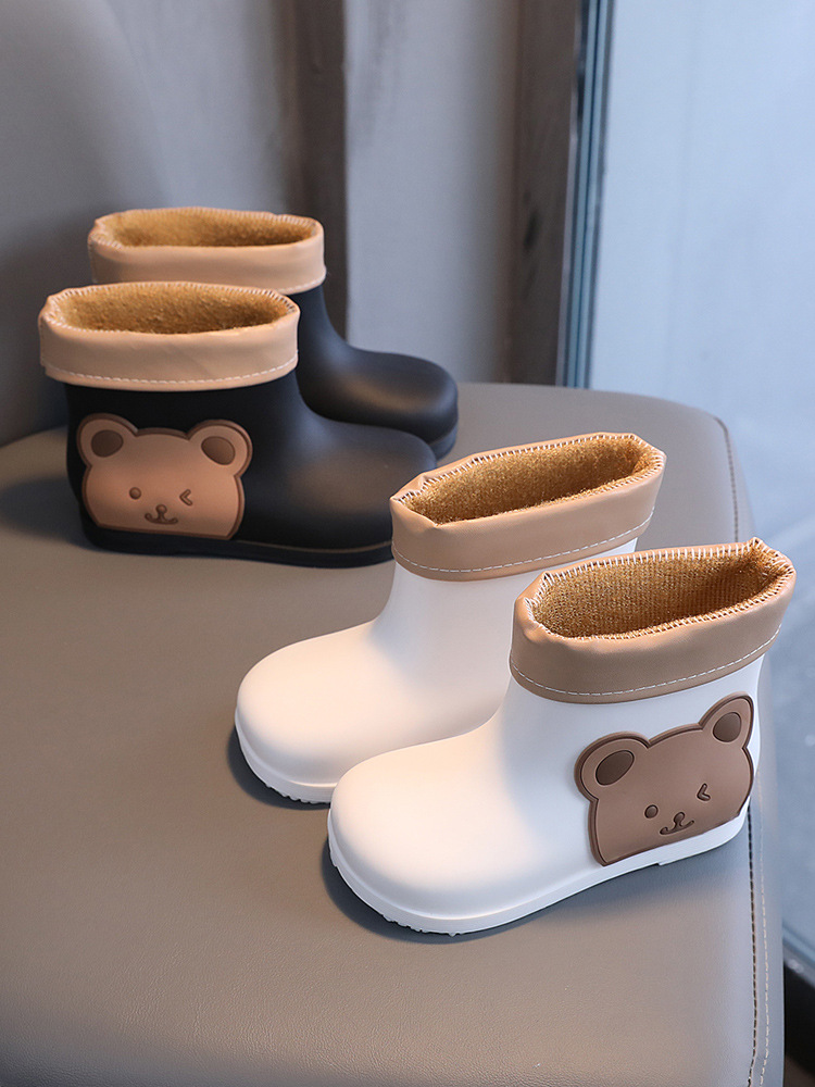 어린이 비 부츠 만화 귀여운 장화 고무 아기 방수 경량 비 슬립 기모 소녀를위한 어린이 워터 부츠