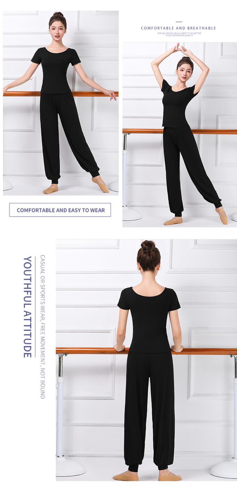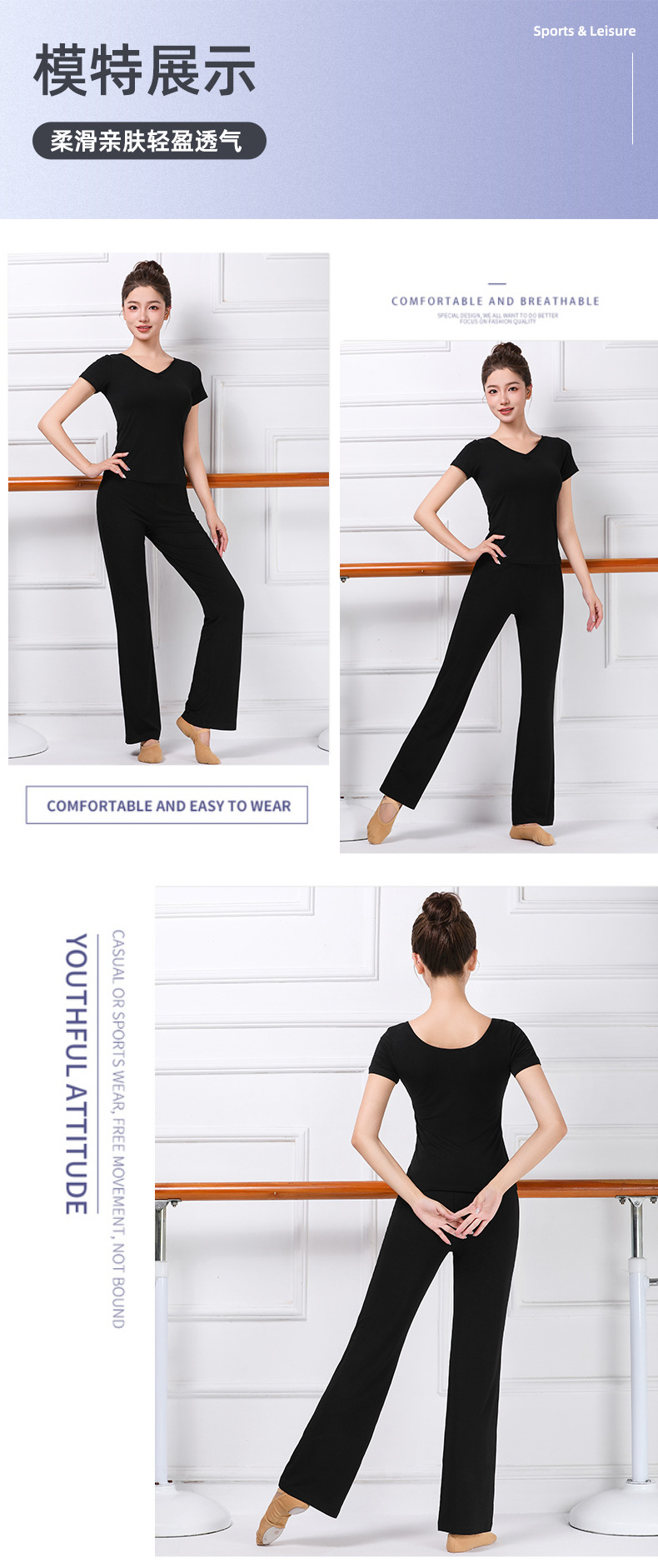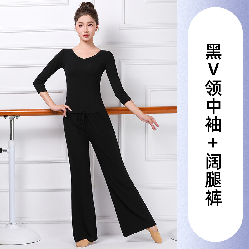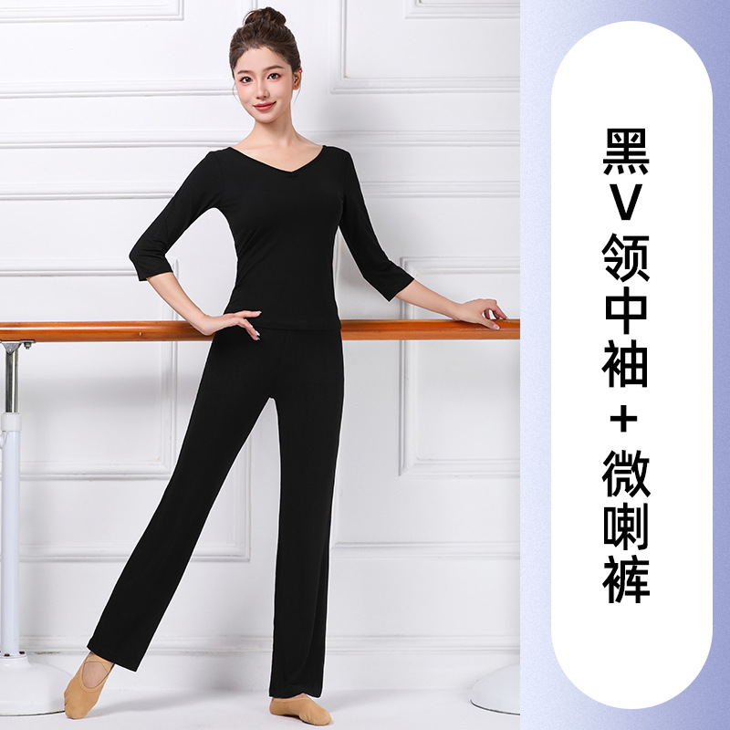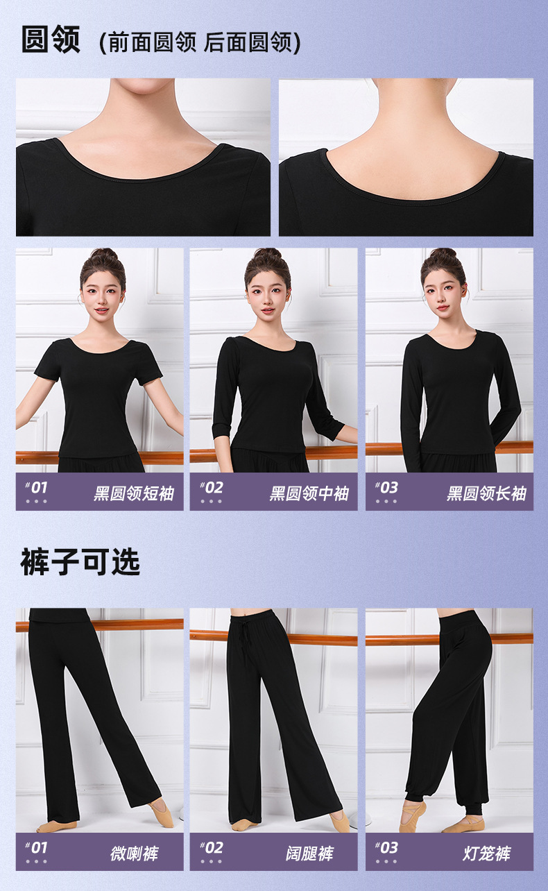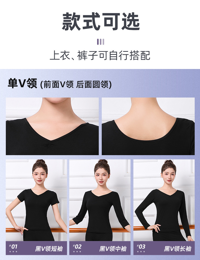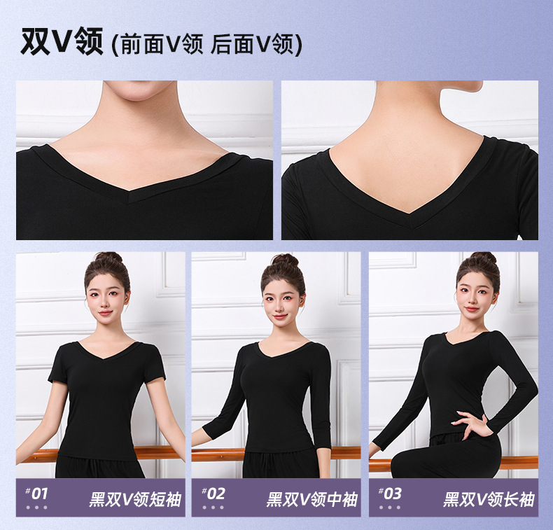중국 고전 현대 댄스 길고 짧은 소매 V-목 춤 옷 훈련 옷 크루 넥 바디 발레 훈련 댄스 의류스토어 가기