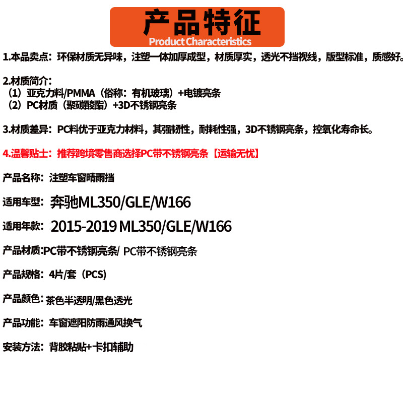• 메르세데스 벤츠 GLE 윈도우 레인 쉴드 벤츠 GLE 클래스 W166 2015-19윈도우 바이저