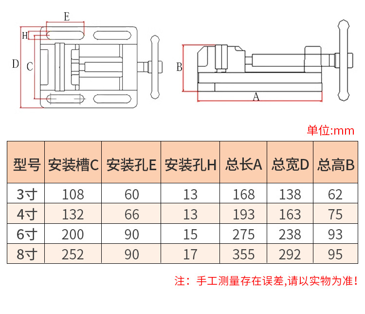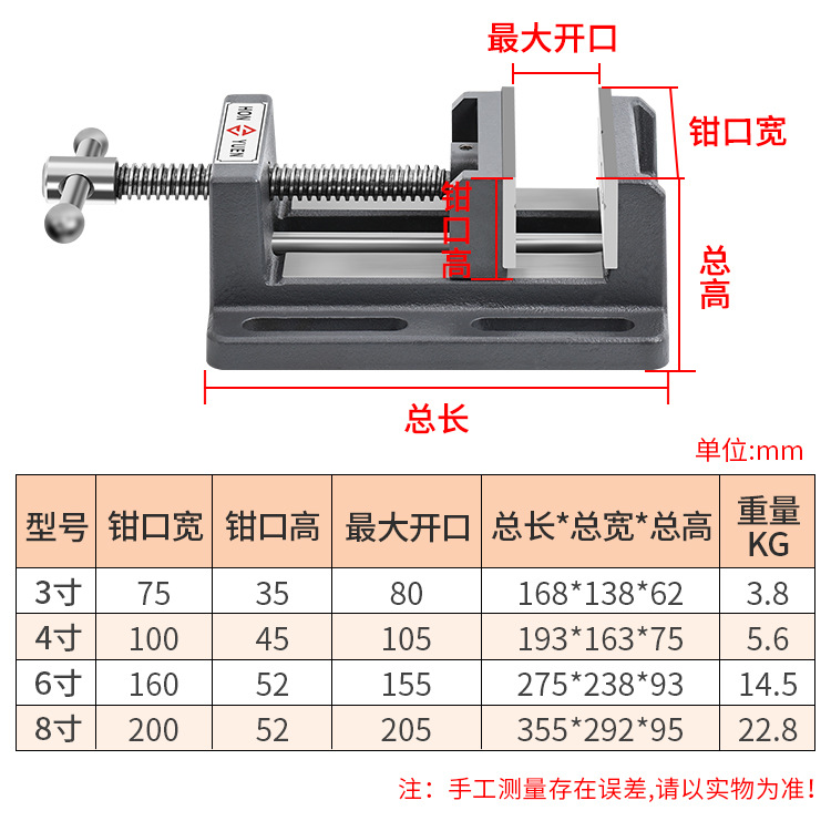 가이드 로드 타입 대형 드릴링 머신 플랫 클램프 벤치 드릴링 밀링 머신 바이스 클램프 3 인치 4 인치 6 인치 8 인치 바이스 도매