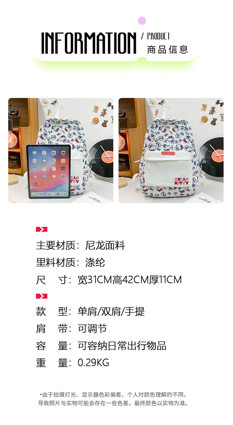 여자 귀여운 KT 고양이 중학교 여중생 배낭 대용량 스쿨백 초등학생 스쿨백 경량 학생 배낭