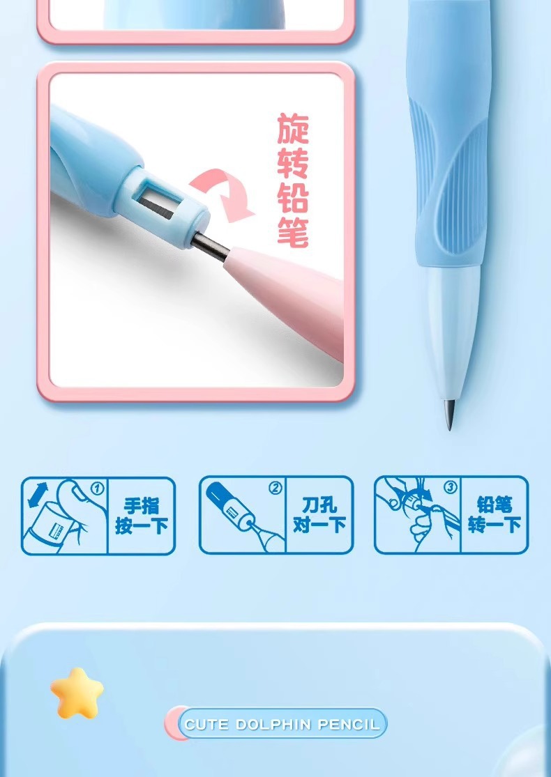 연필 깎기 자동 펜으로 2.0 연속 코어 자동 연필로 초등학생을위한 새로운 돌고래 자세 연필스토어 가기