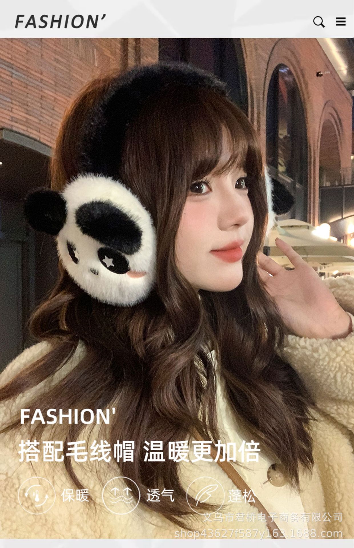 따뜻한 귀마개 겨울 접이식 귀여운 만화 팬더 봉제 두꺼운 여성 어린이 귀마개스토어 가기