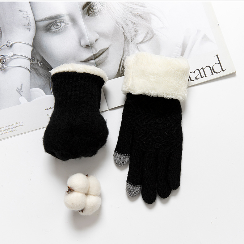 2024 새로운 니트 장갑 양모 바느질 겨울 남녀 스키 스포츠 터치 스크린 사이클링 등산 따뜻한 장갑