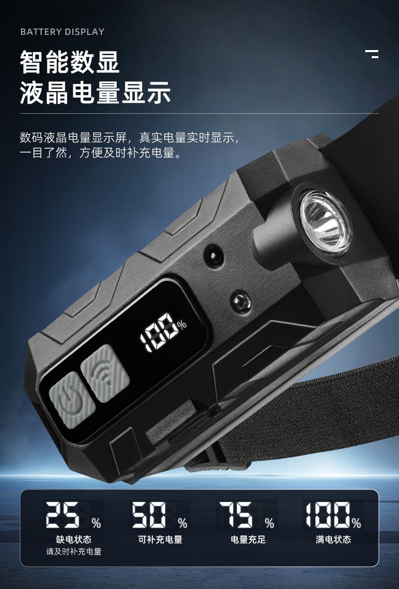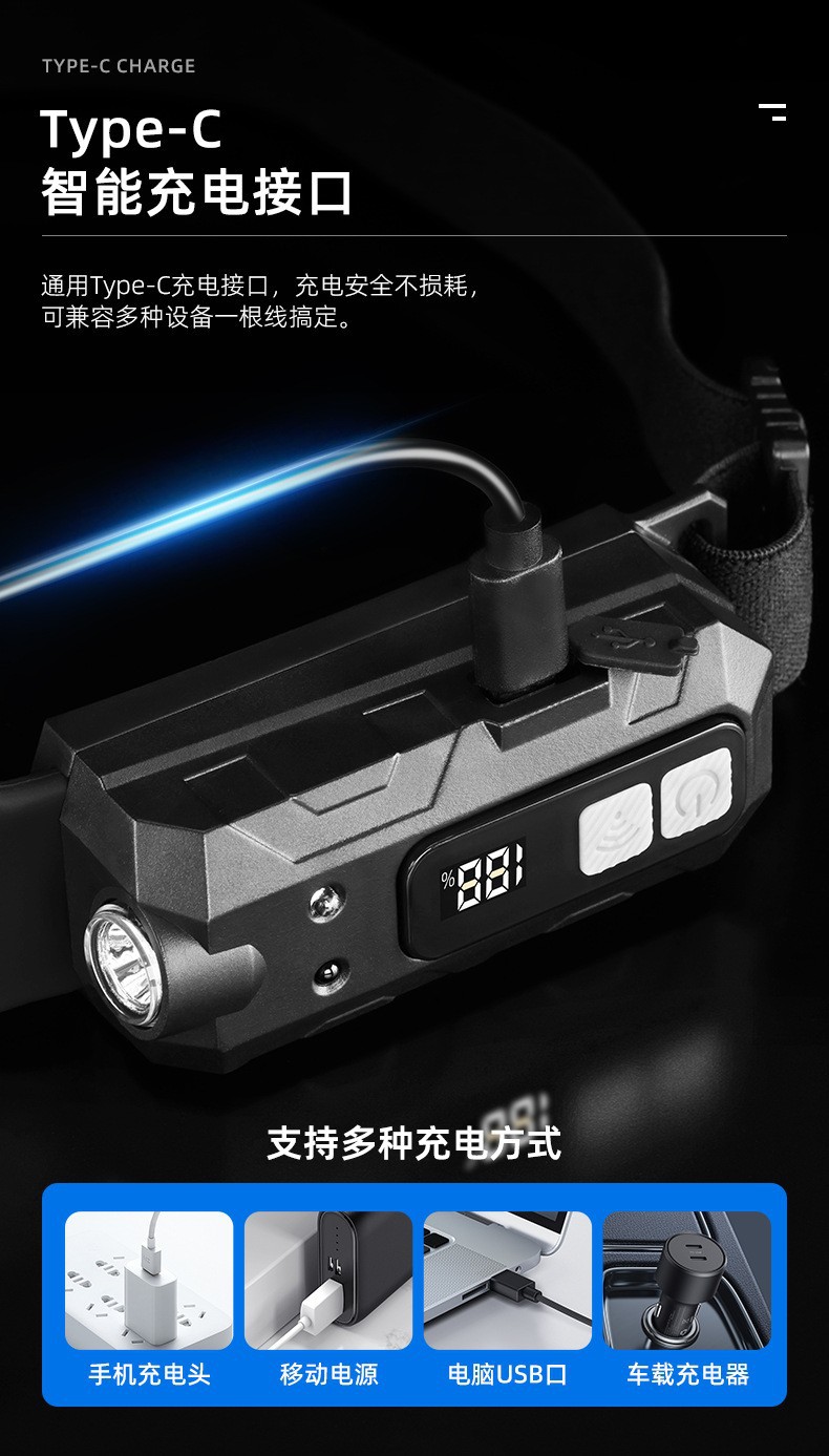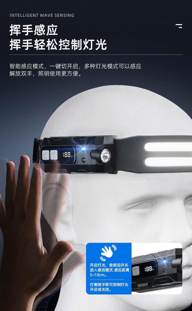 국경을 넘는 야간 낚시 및 캠핑용 강력한 빛, 높은 루멘, 긴 배터리 수명, 충전식, 야외 전용 낚시 LED 실리콘 센서 헤드램프스토어 가기