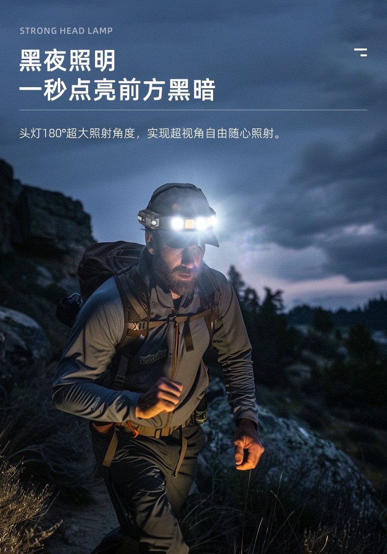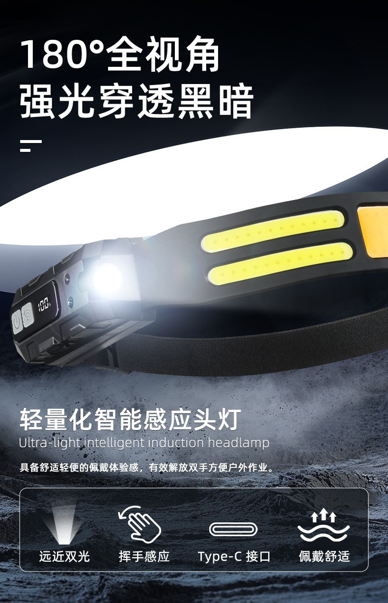 국경을 넘는 야간 낚시 및 캠핑용 강력한 빛, 높은 루멘, 긴 배터리 수명, 충전식, 야외 전용 낚시 LED 실리콘 센서 헤드램프