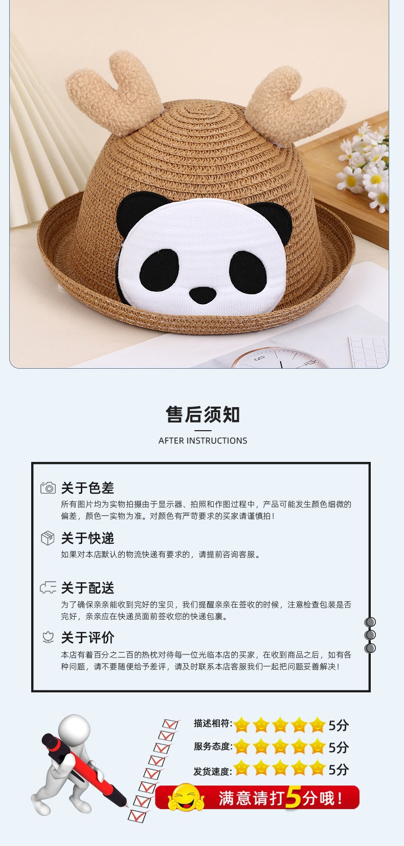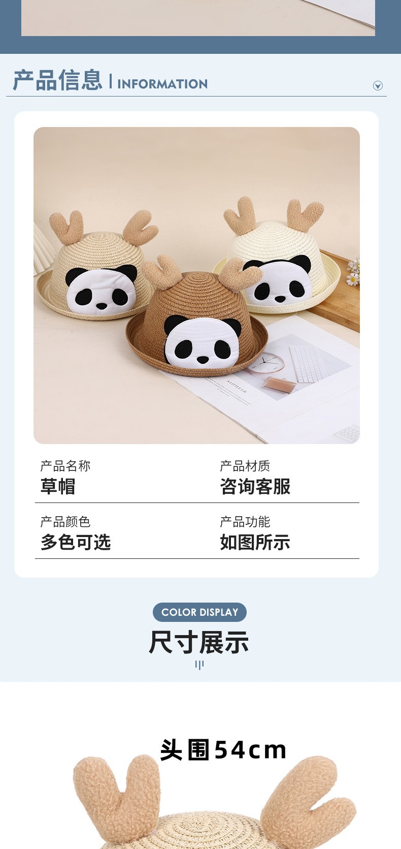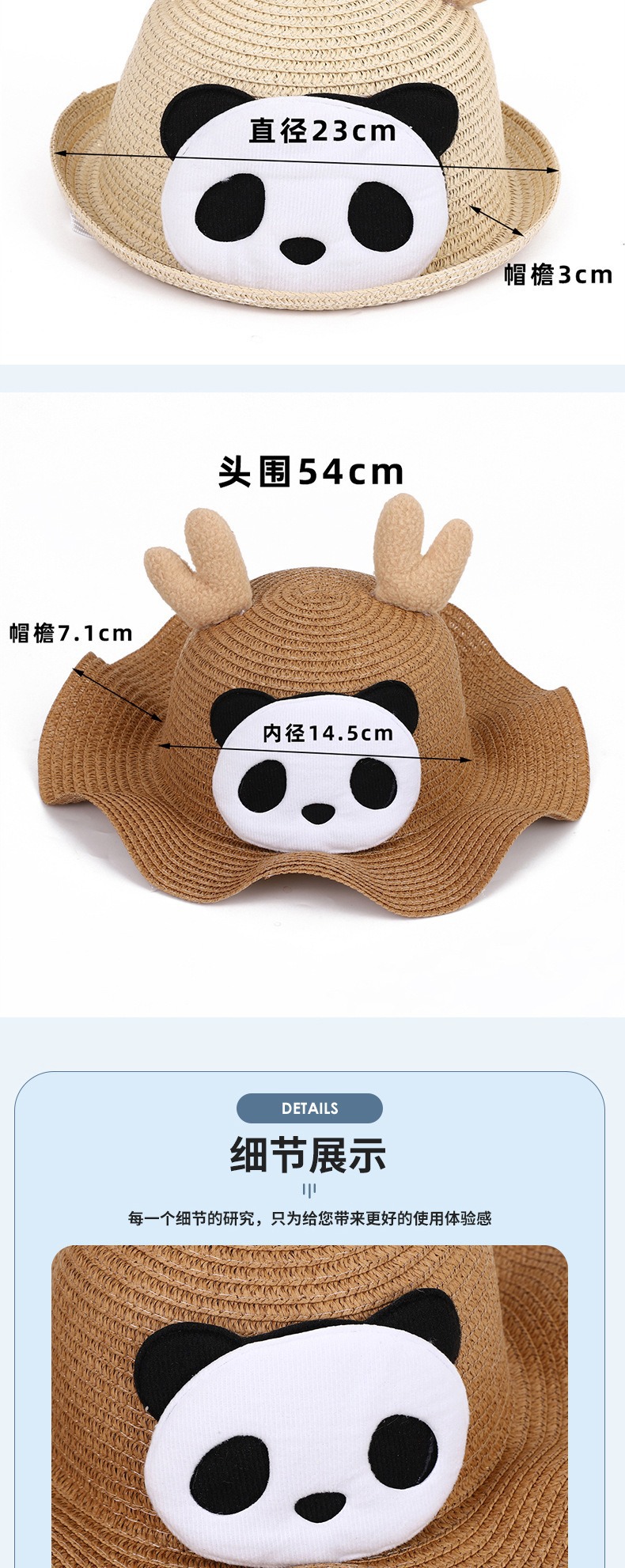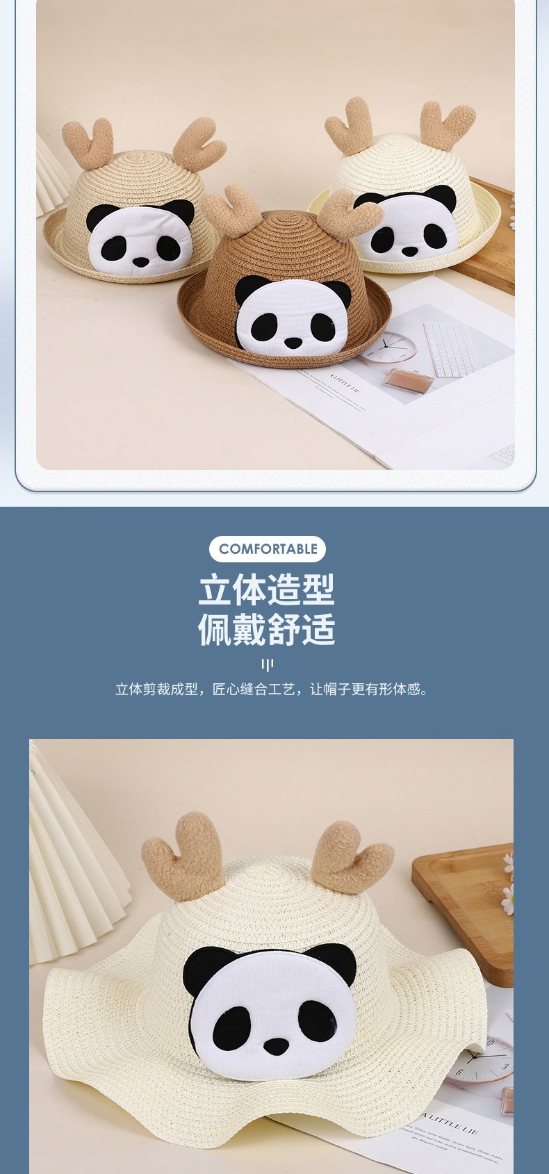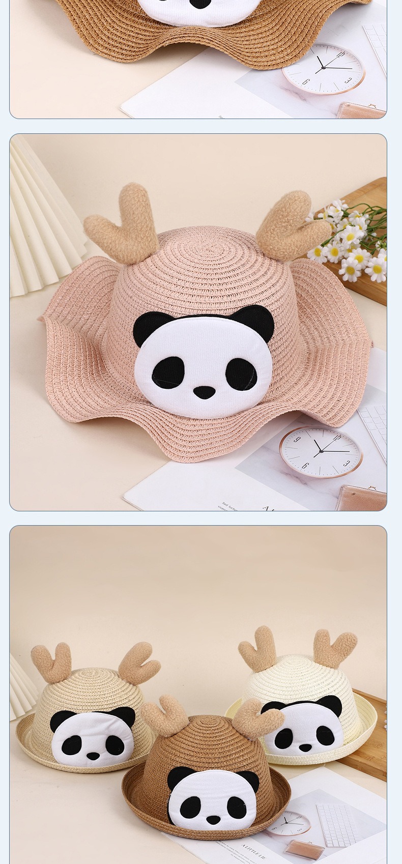크리스마스 만화 봉제 뿔 밀짚 모자 어린이 귀여운 팬더 짠 선 스크린 모자 휴가 놀이 차양 해변 모자스토어 가기