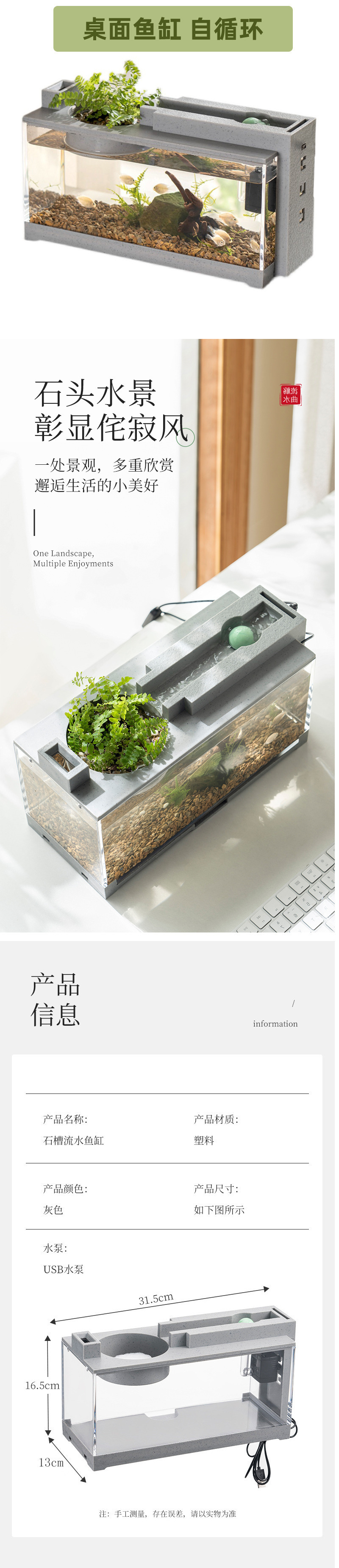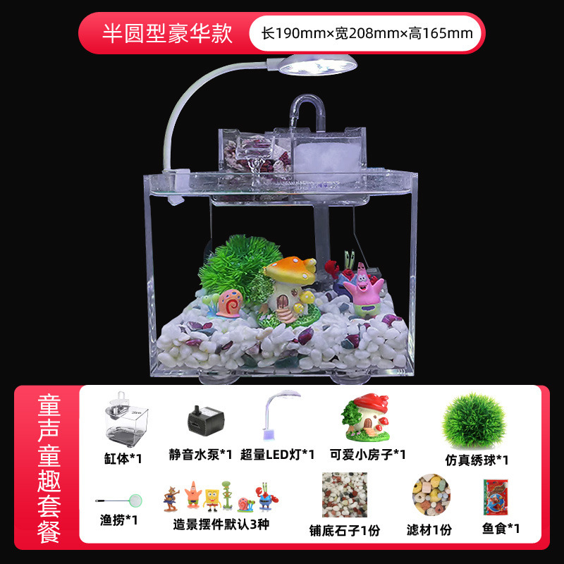 데스크탑 미니 작은 어항 자체 순환 마이크로 조경 공작 어항 조경 아크릴 순환 데스크탑 어항
