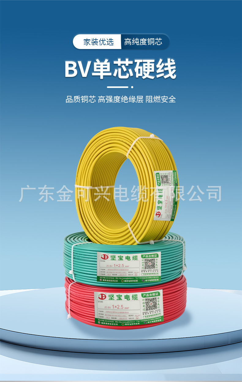 광동 지안바오 케이블 국가표준 ZC-BV 경선 1.5/2.5/4/6 평방 단심 난연성 순수 무산소 구리심 전선