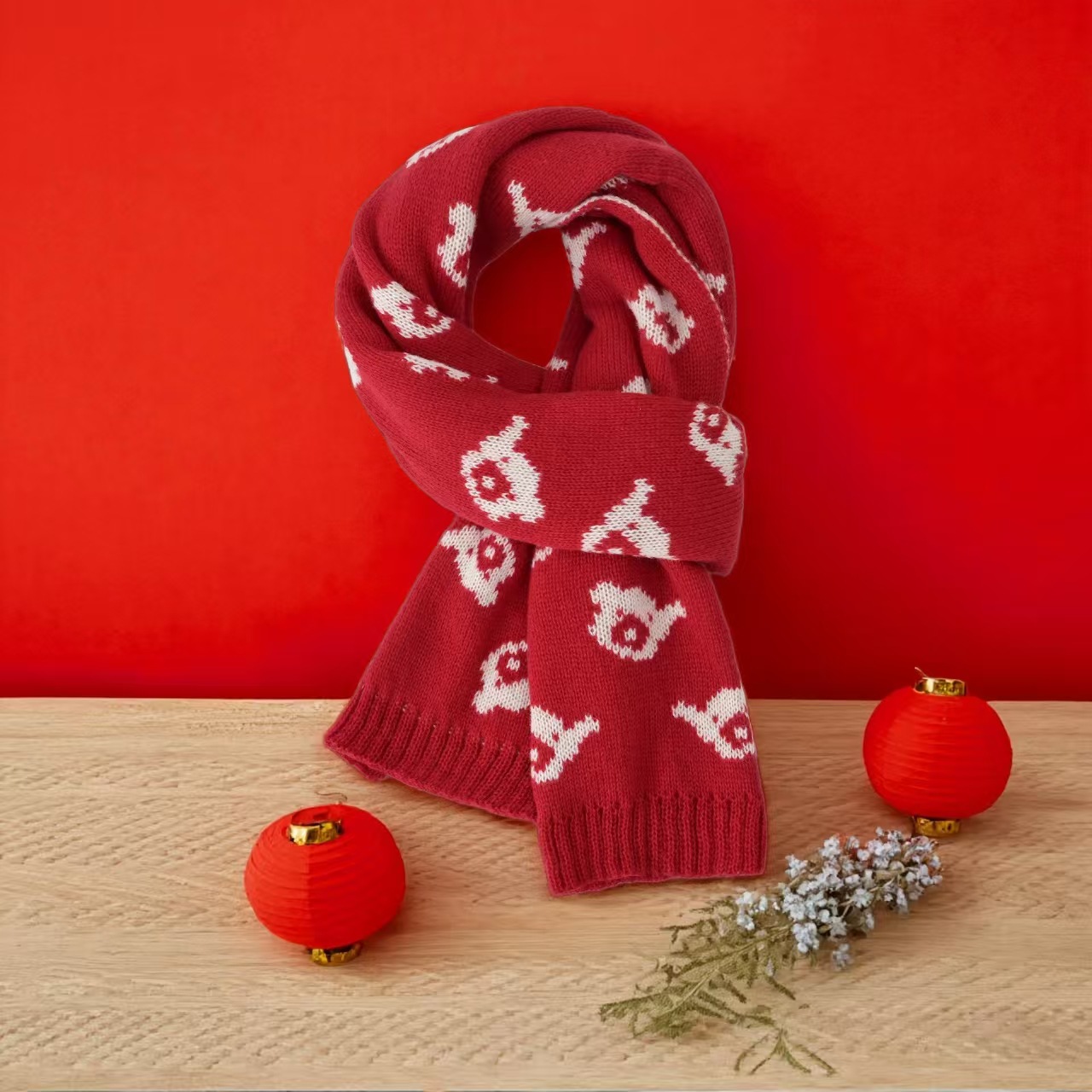 새해 붉은 어린이 붉은 스카프 아기 겨울 두꺼운 따뜻한 스카프 설날 봄 축제 크리스마스 부모-어린이 축제스토어 가기