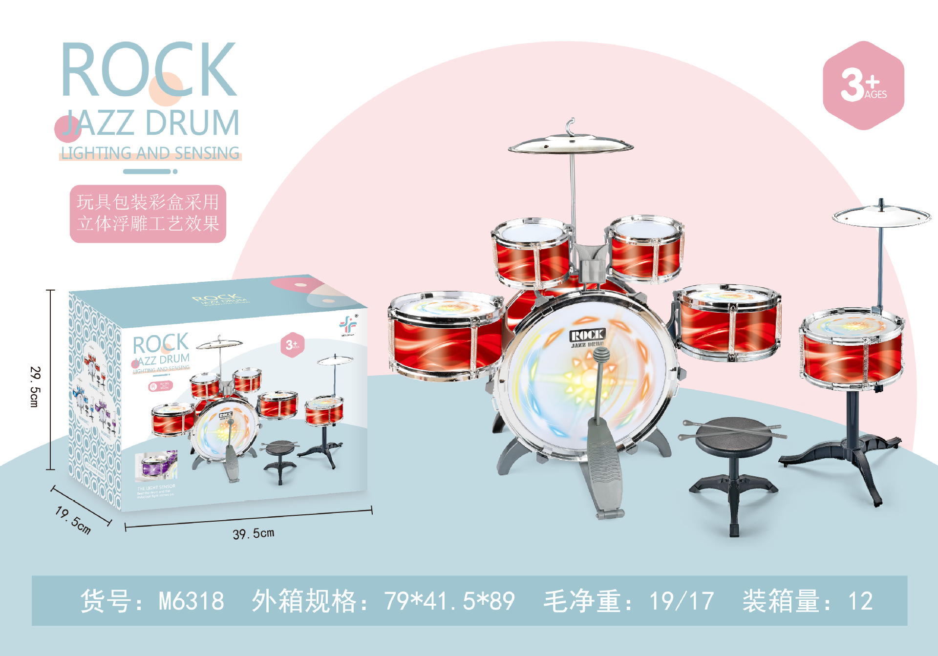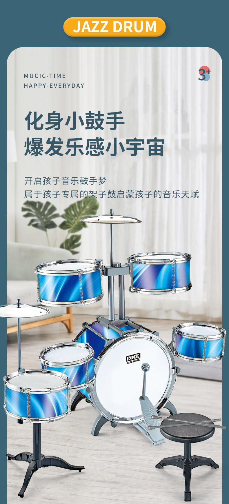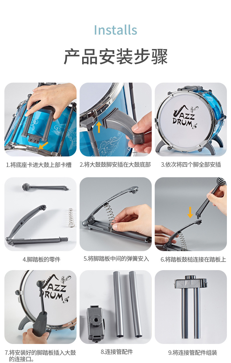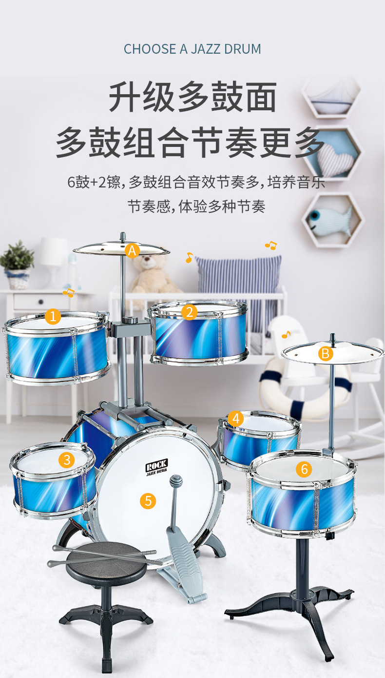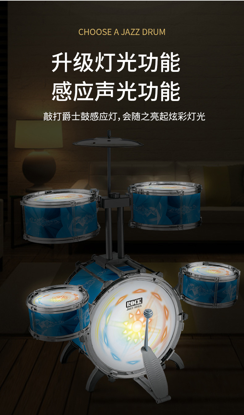 대형 다채로운 조명 어린이 드럼 소년과 소녀 재즈 드럼 초보자 타악기 아기 드럼 장난감스토어 가기