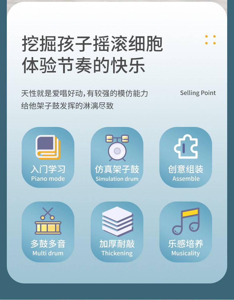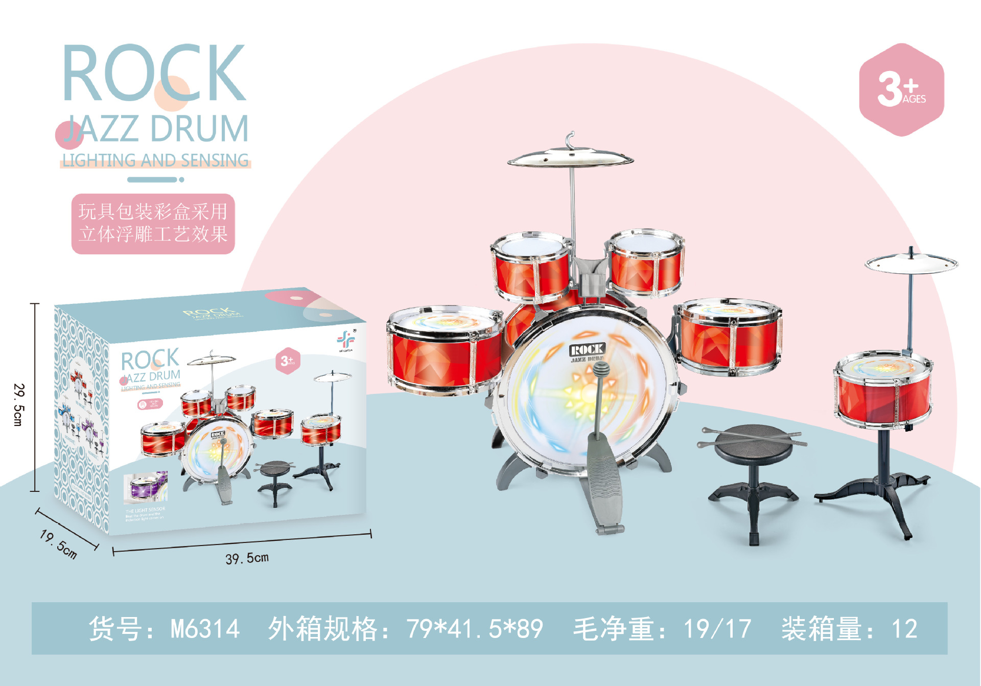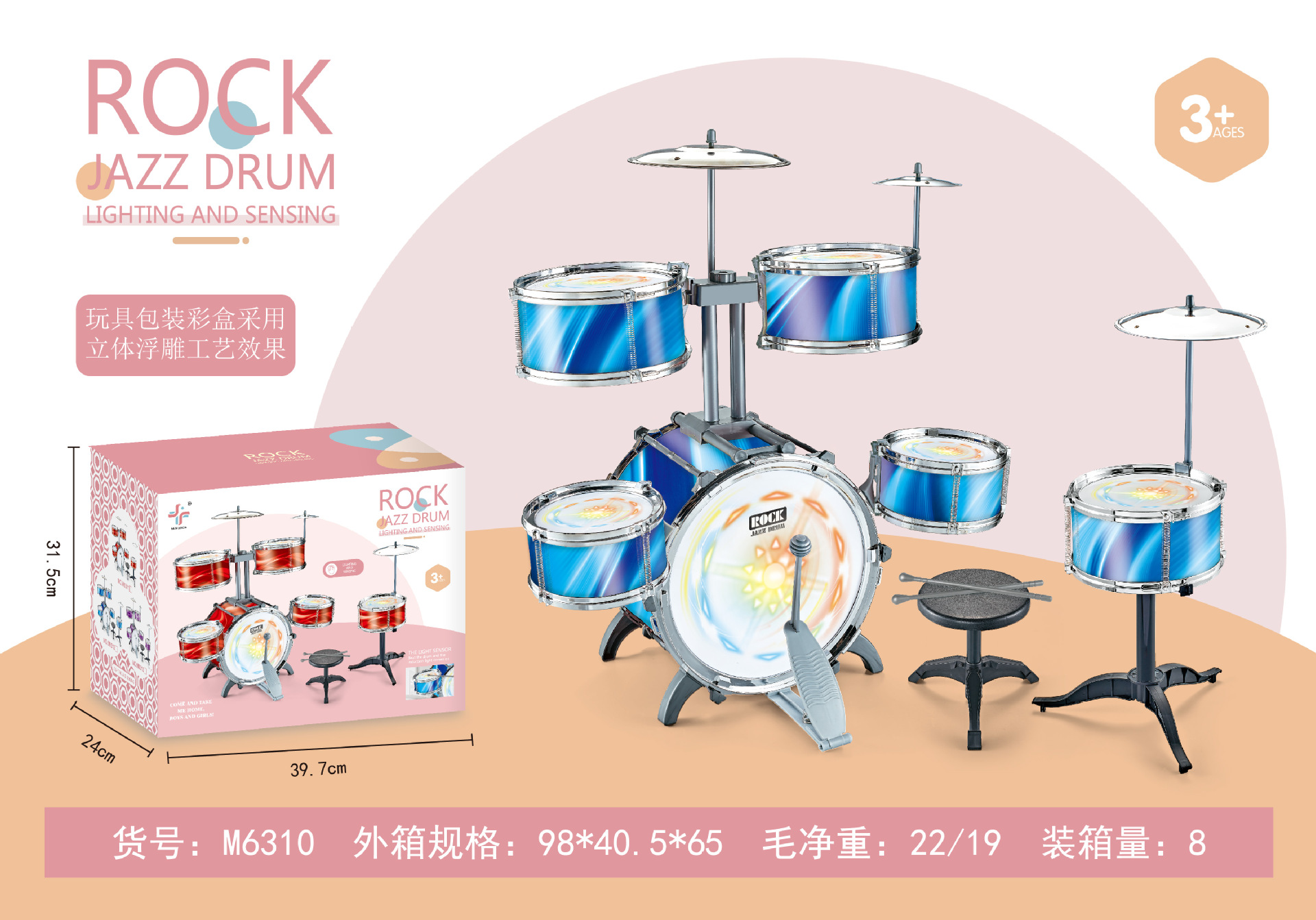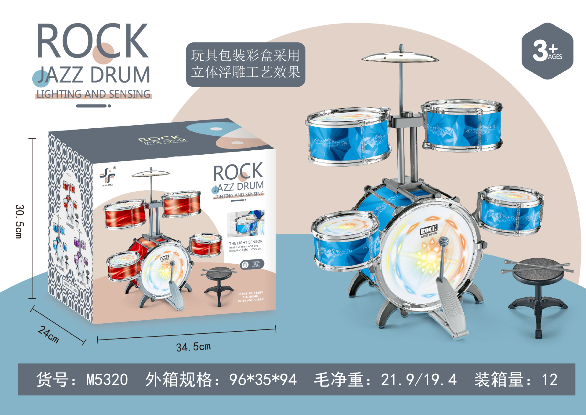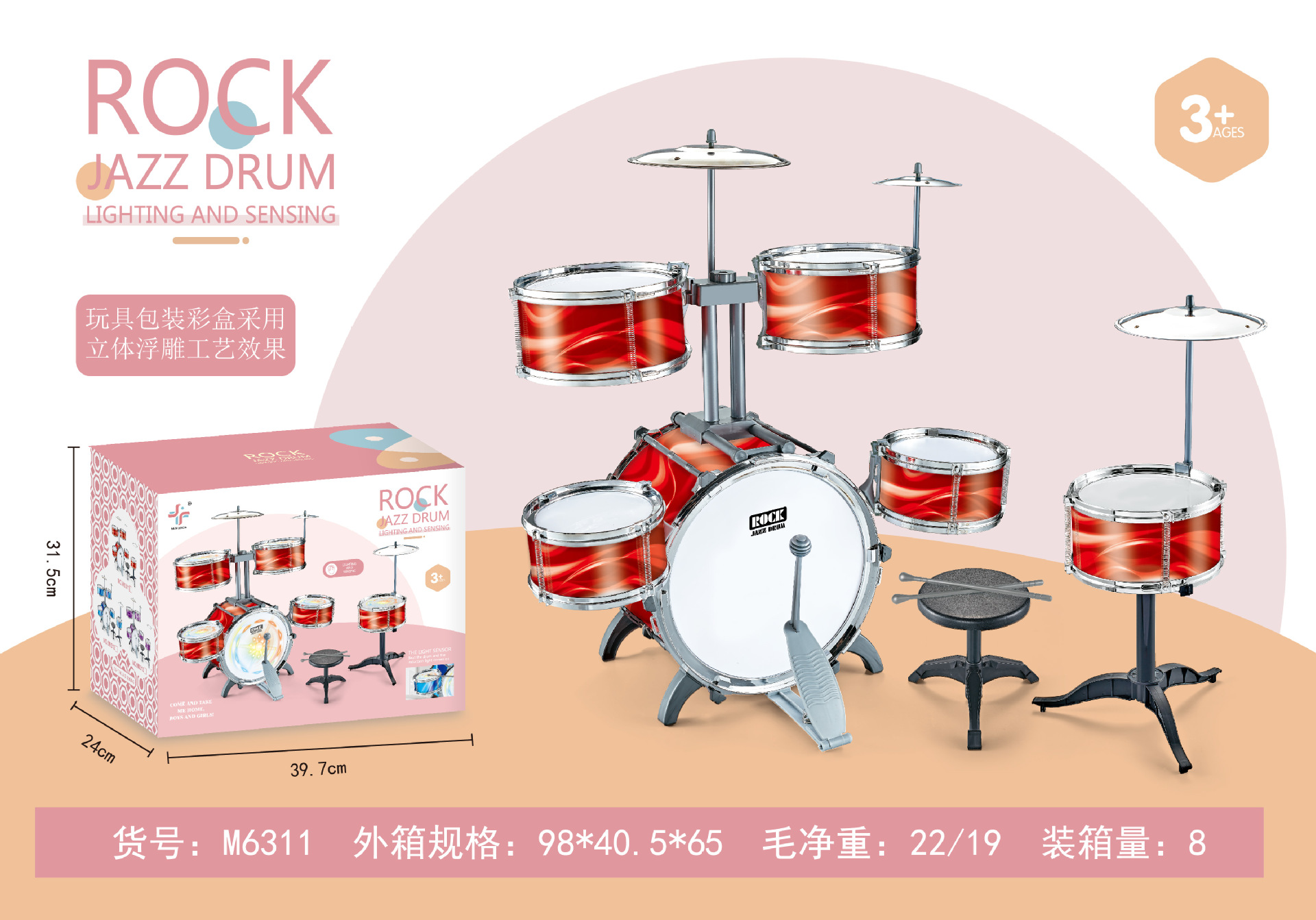 대형 다채로운 조명 어린이 드럼 소년과 소녀 재즈 드럼 초보자 타악기 아기 드럼 장난감스토어 가기