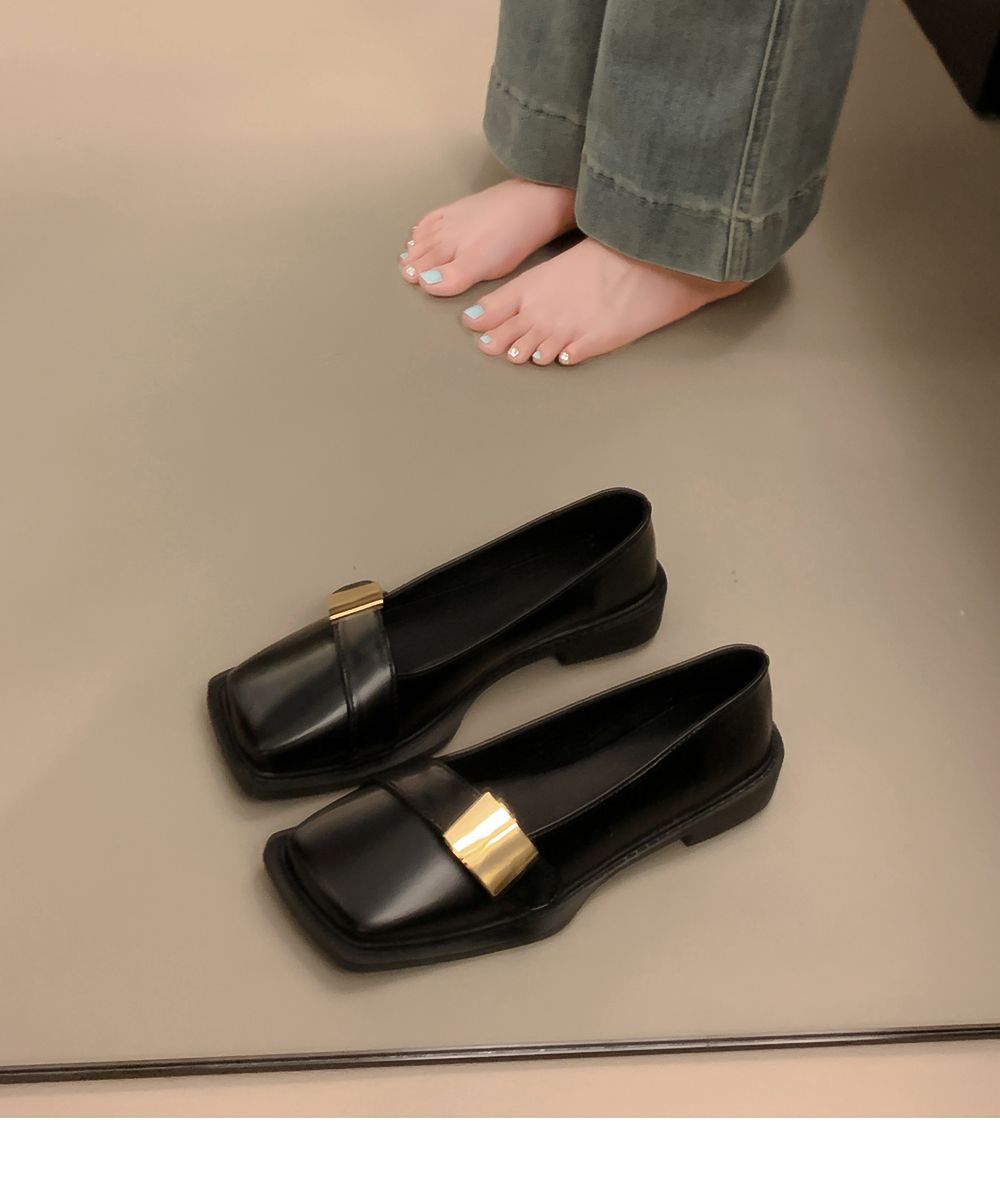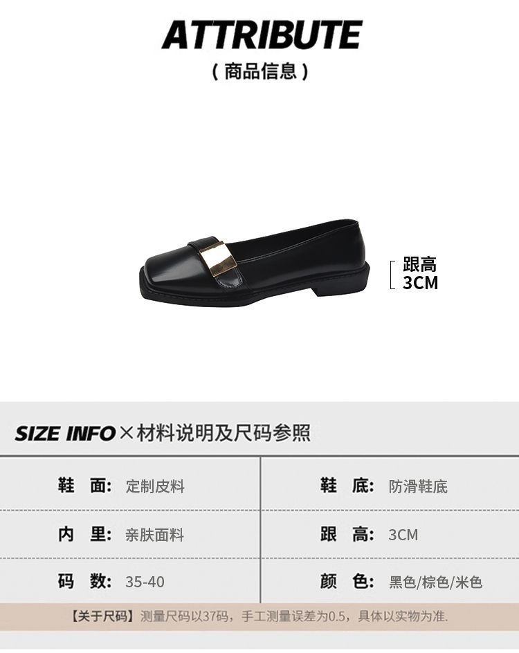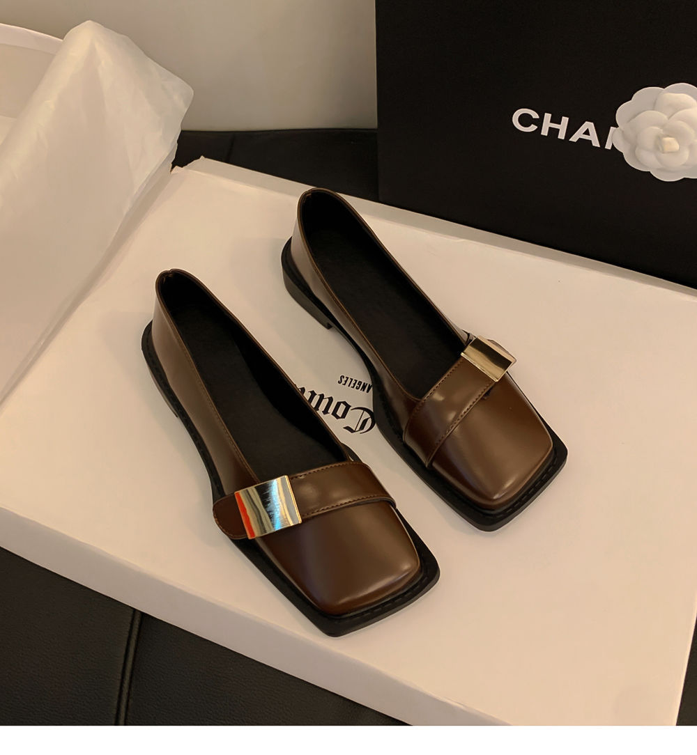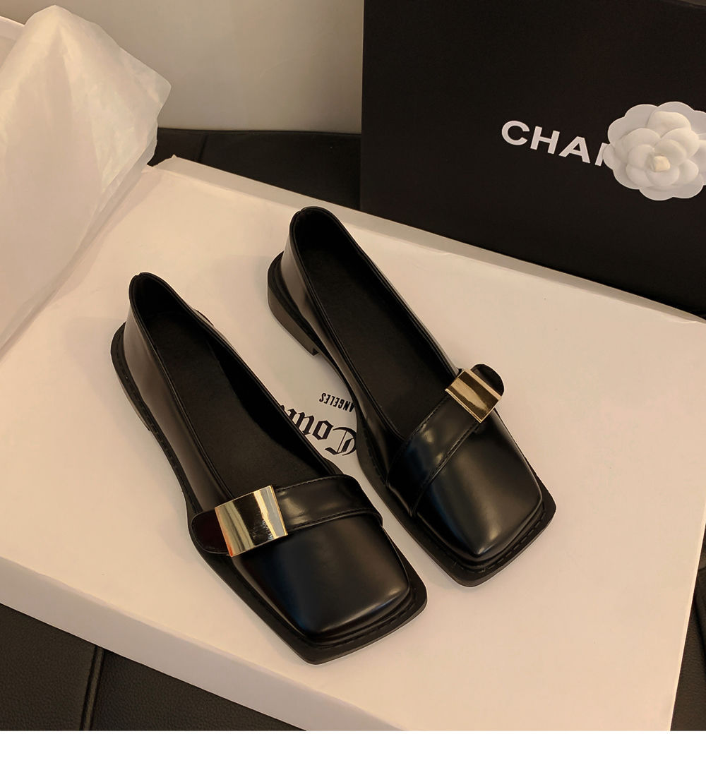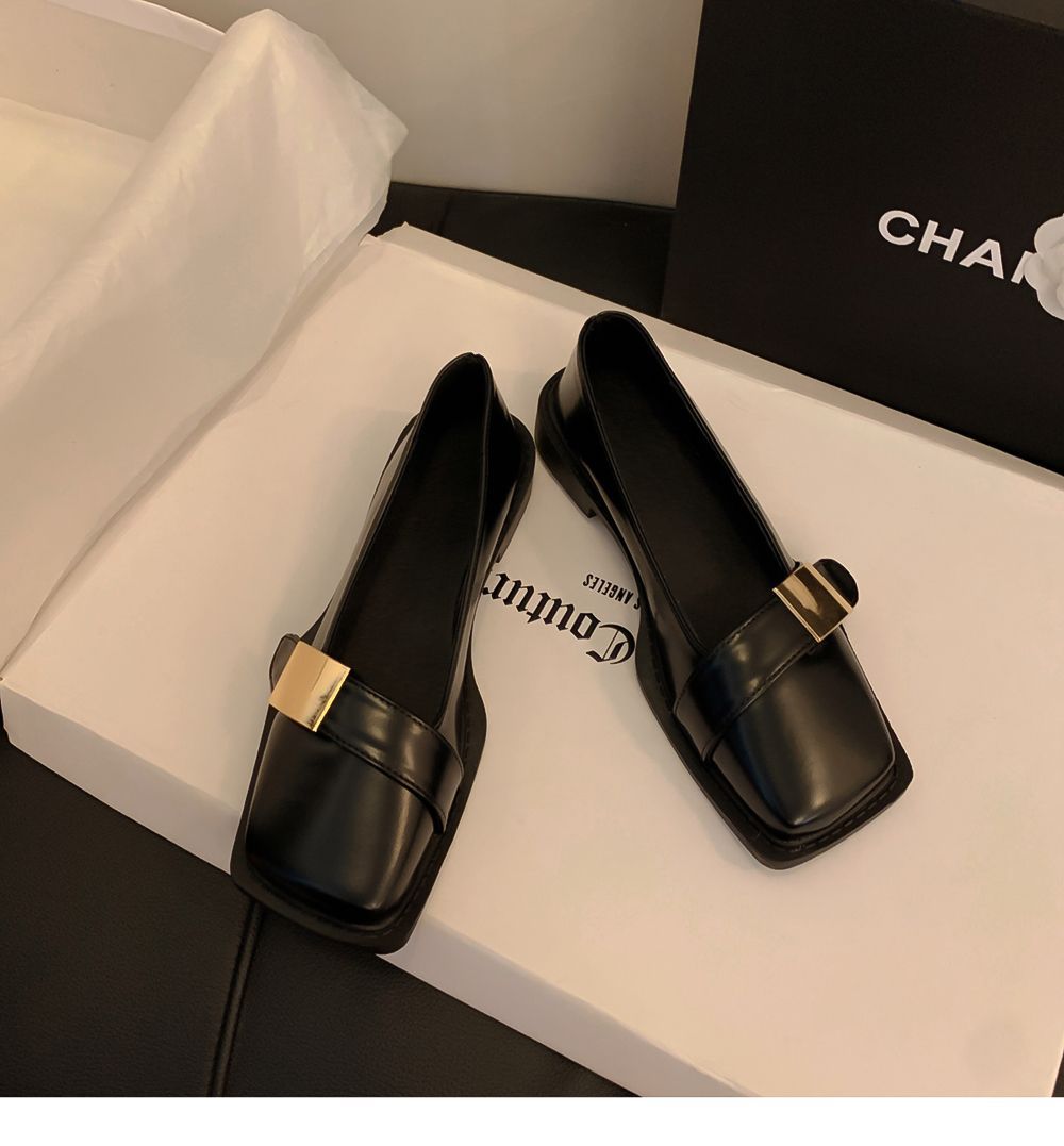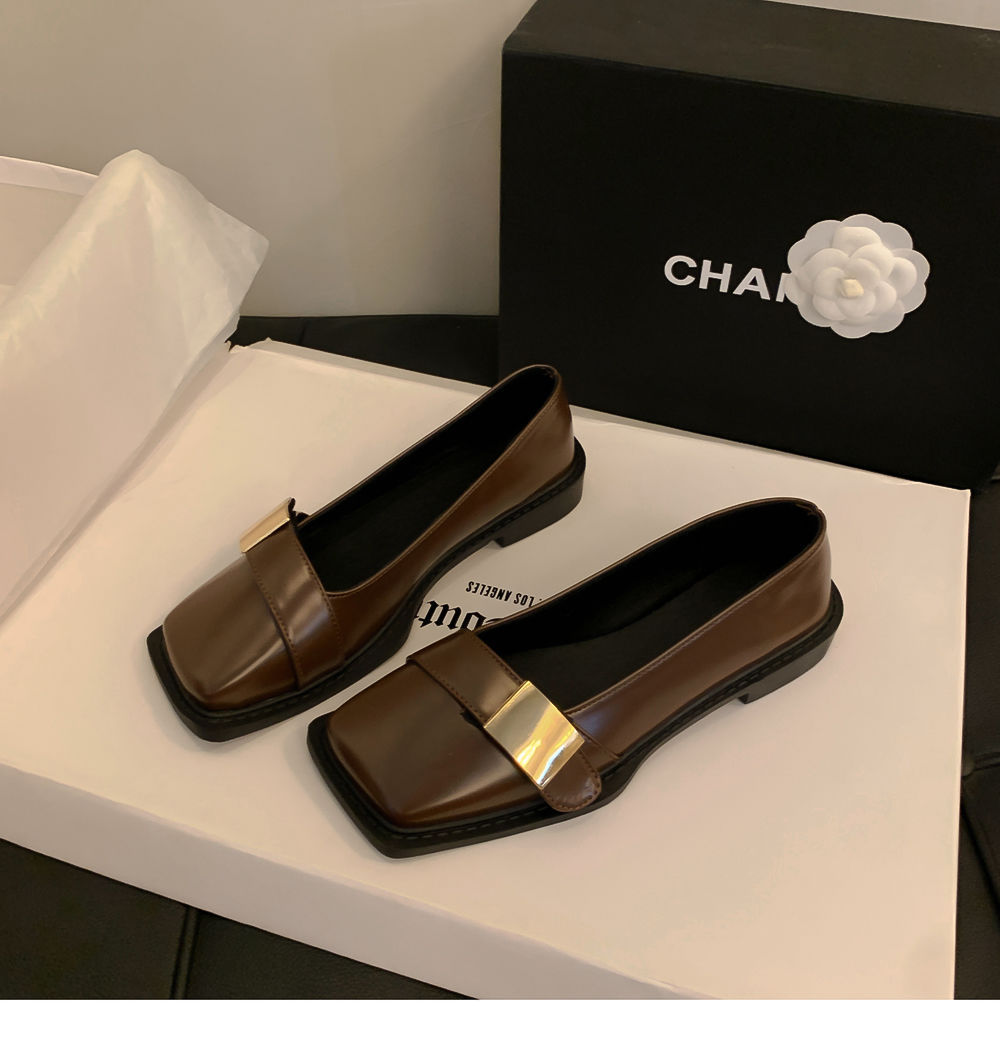 레트로 영국풍 메탈 버클 슈즈 2025 신상 스퀘어토 소프트솔 로퍼 여성 슬립온 가죽 슈즈스토어 가기