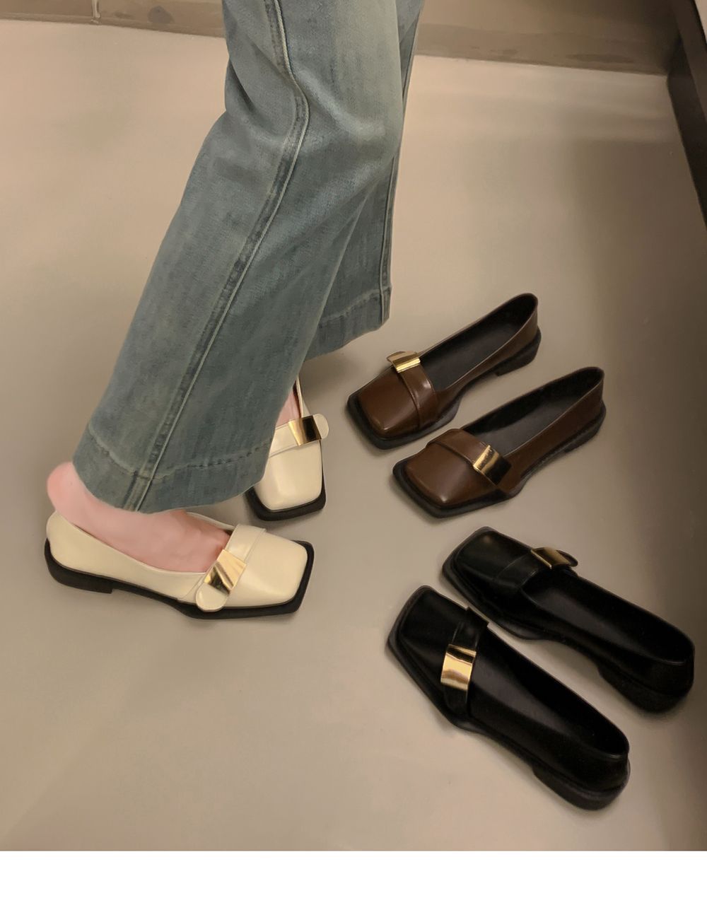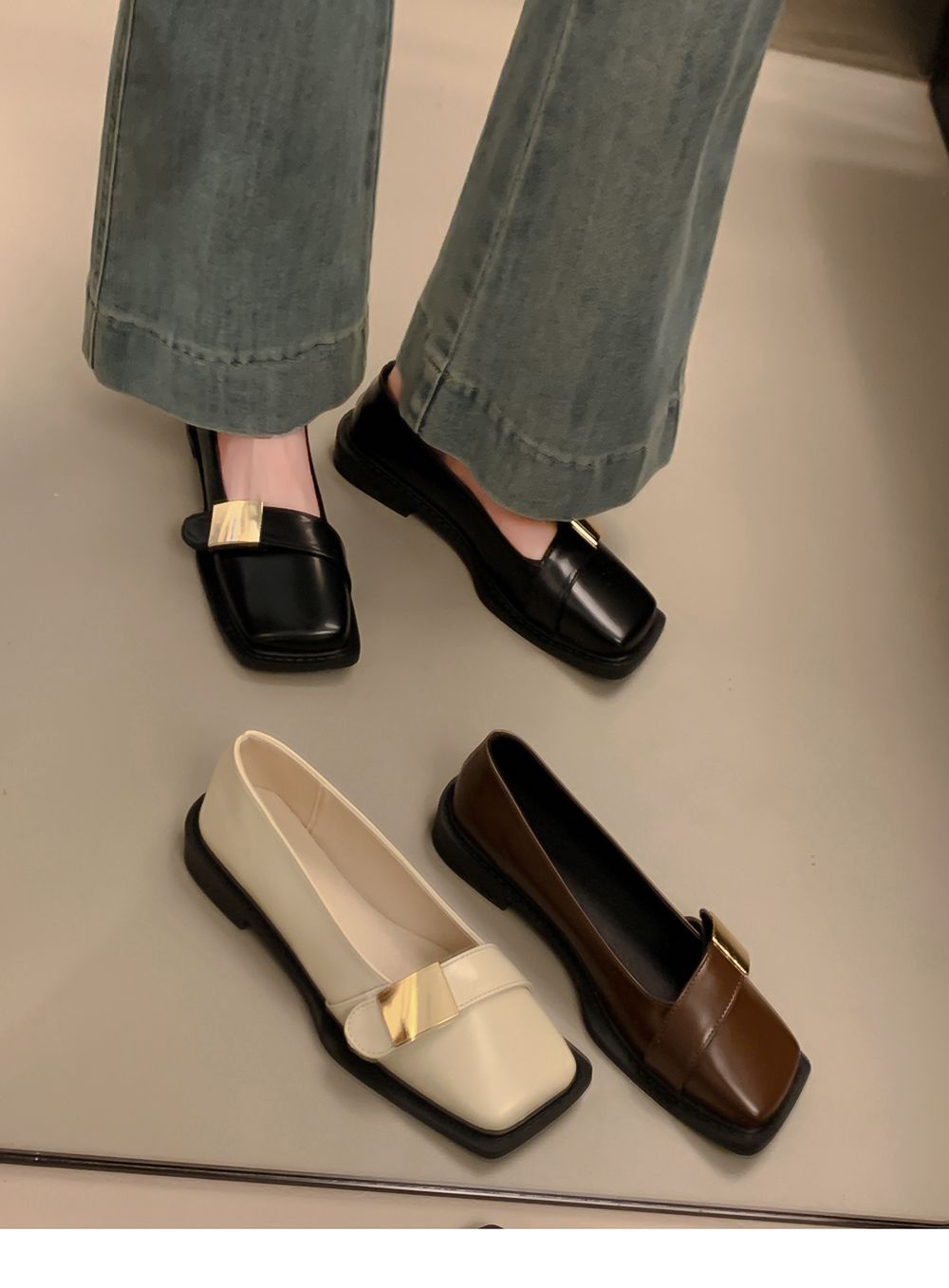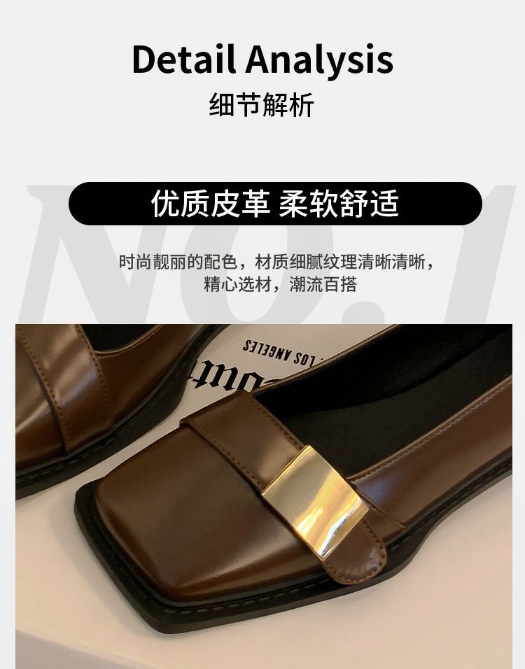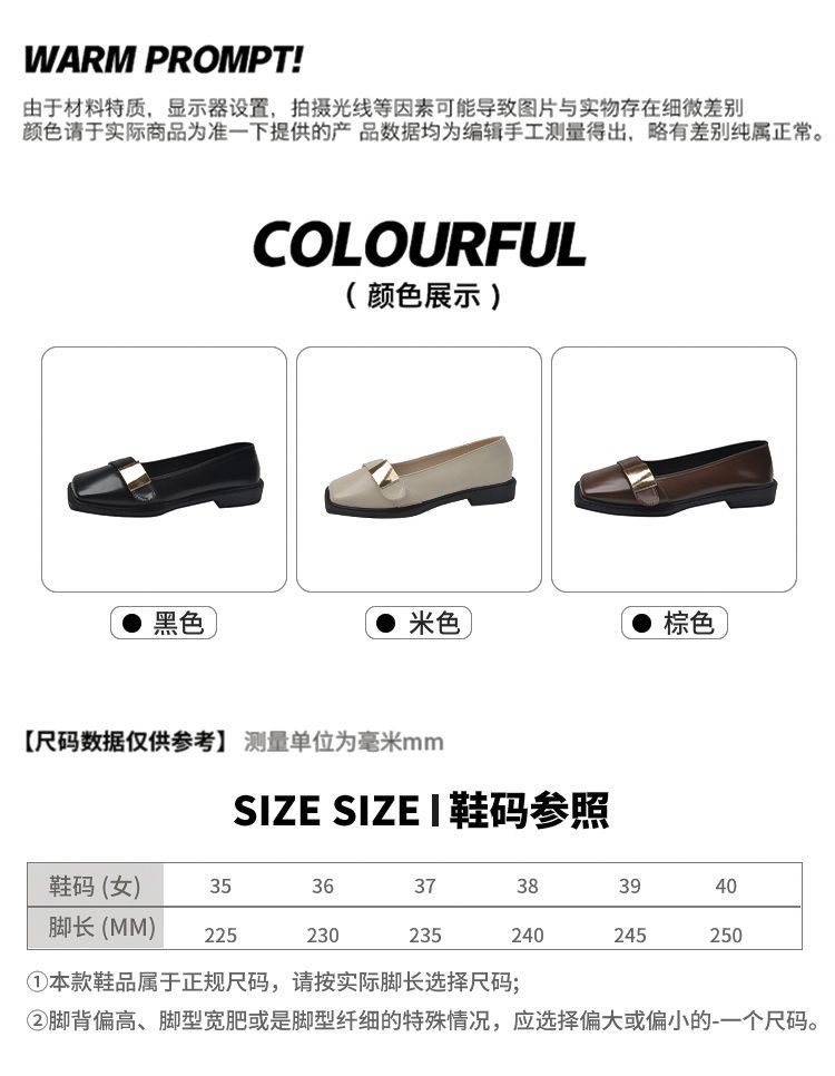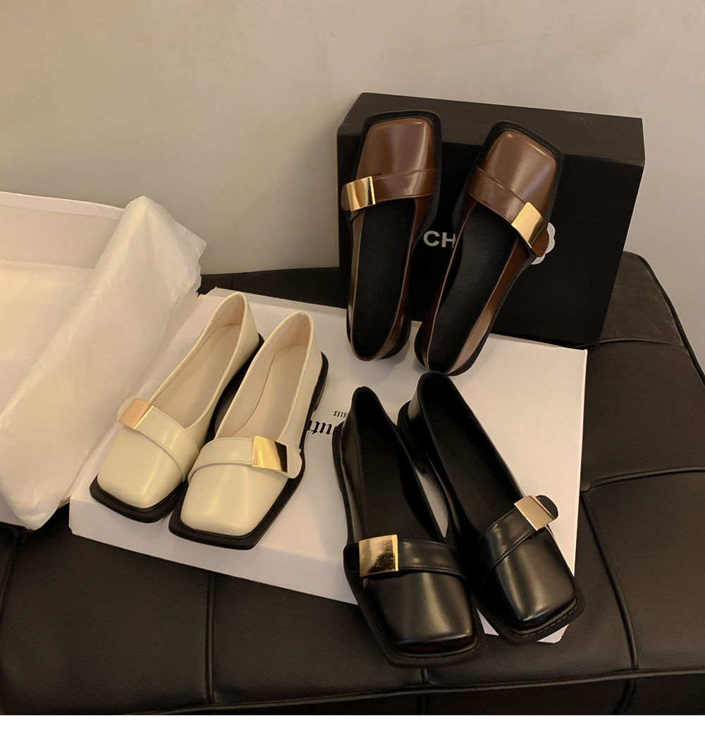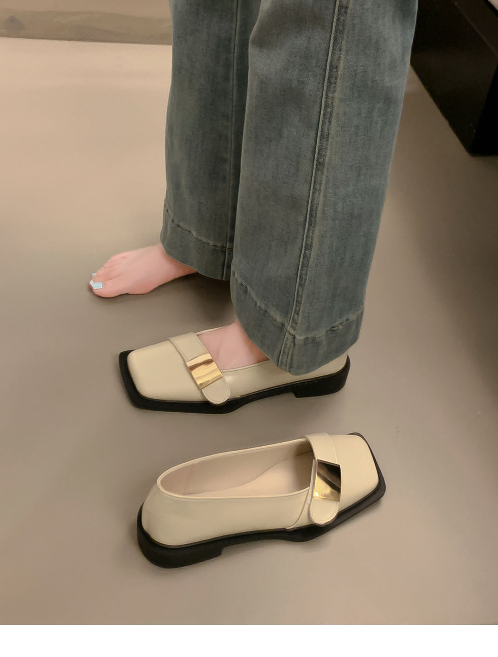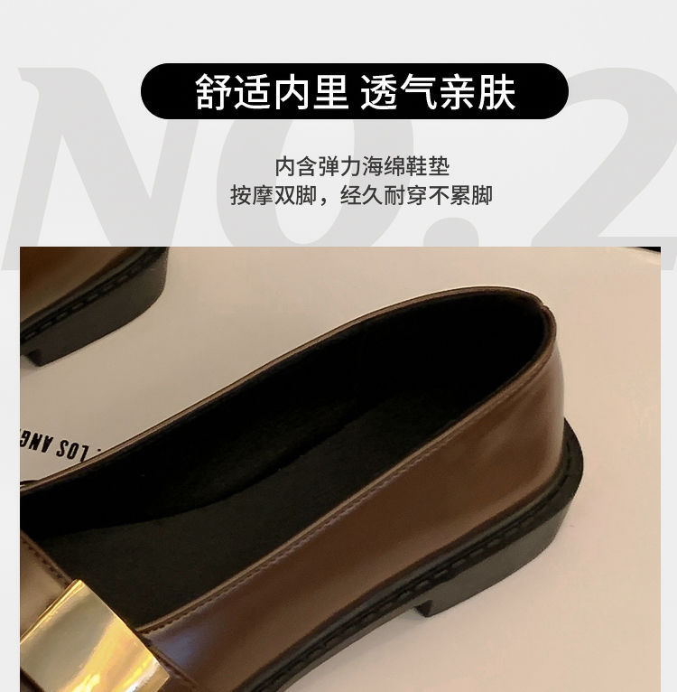 레트로 영국풍 메탈 버클 슈즈 2025 신상 스퀘어토 소프트솔 로퍼 여성 슬립온 가죽 슈즈스토어 가기