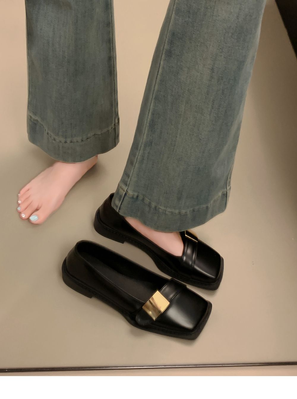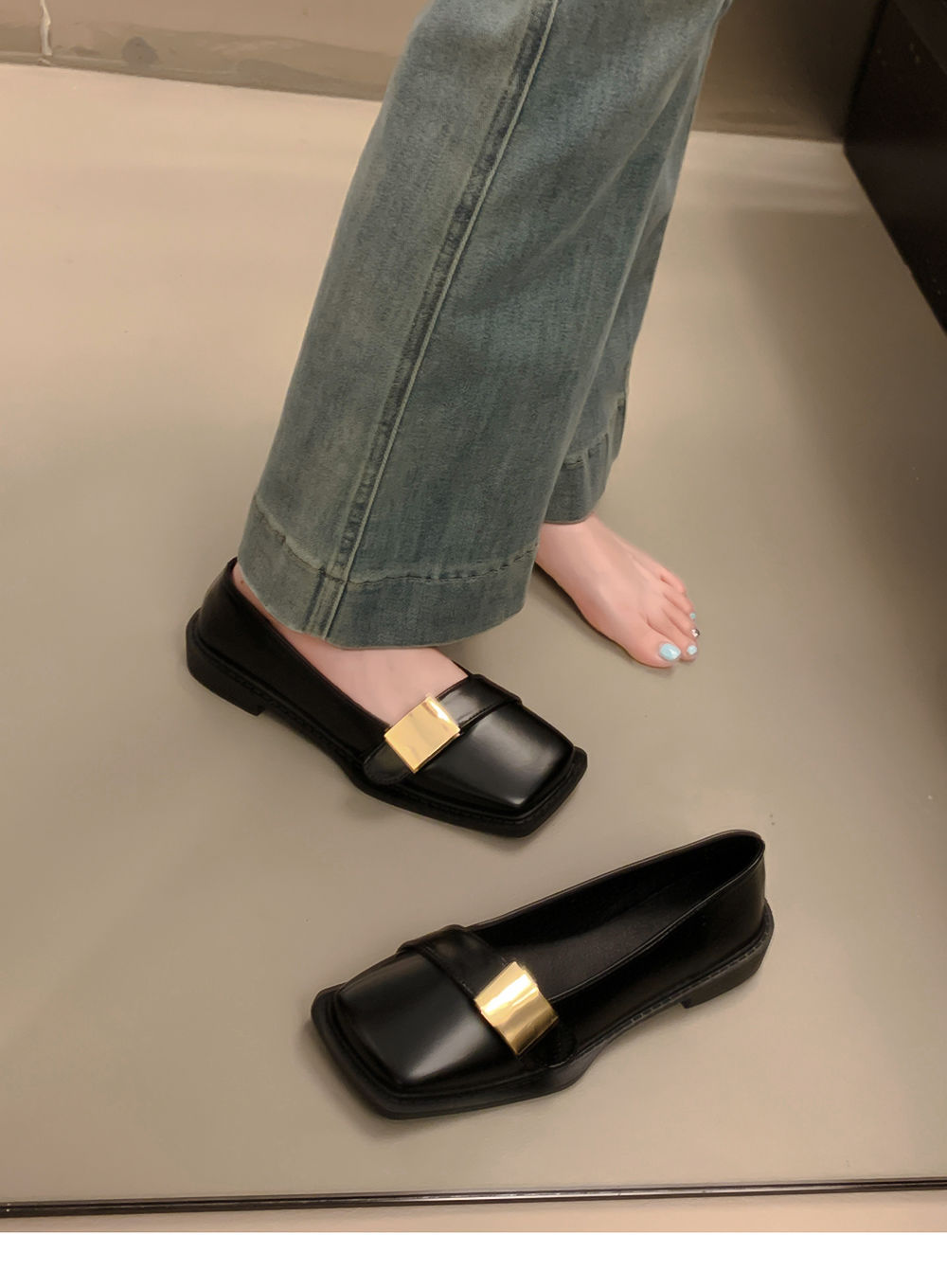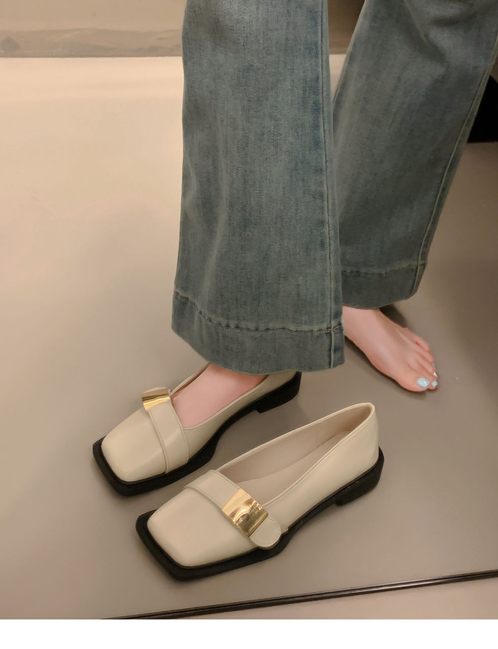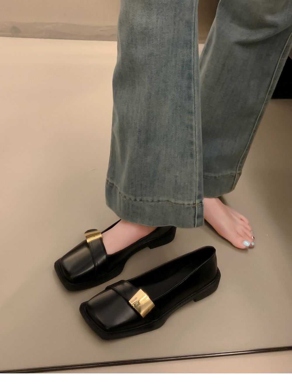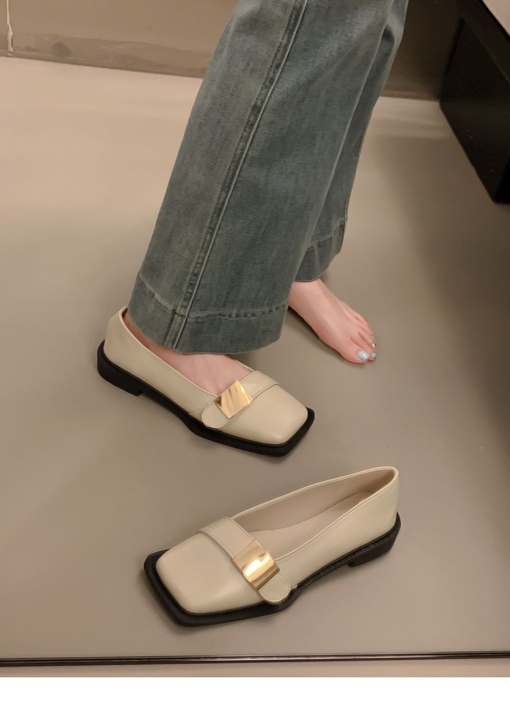 레트로 영국풍 메탈 버클 슈즈 2025 신상 스퀘어토 소프트솔 로퍼 여성 슬립온 가죽 슈즈스토어 가기