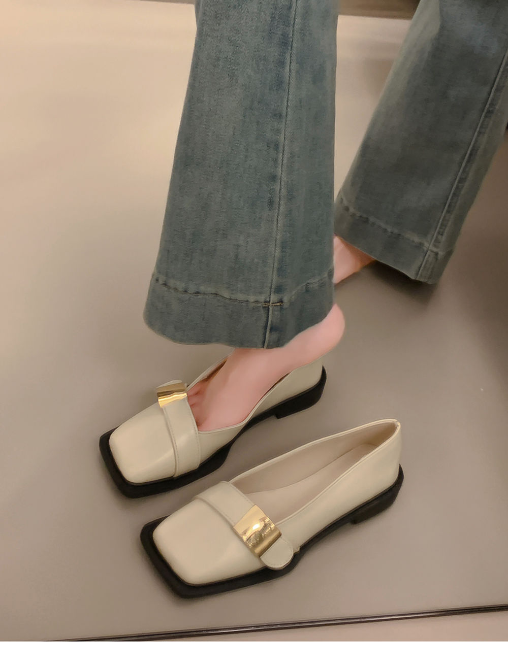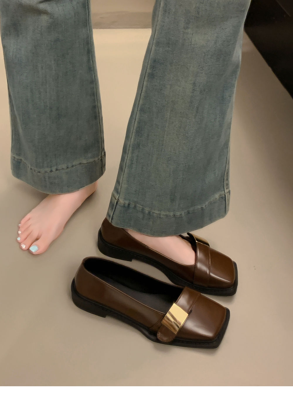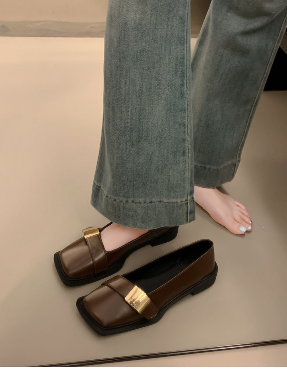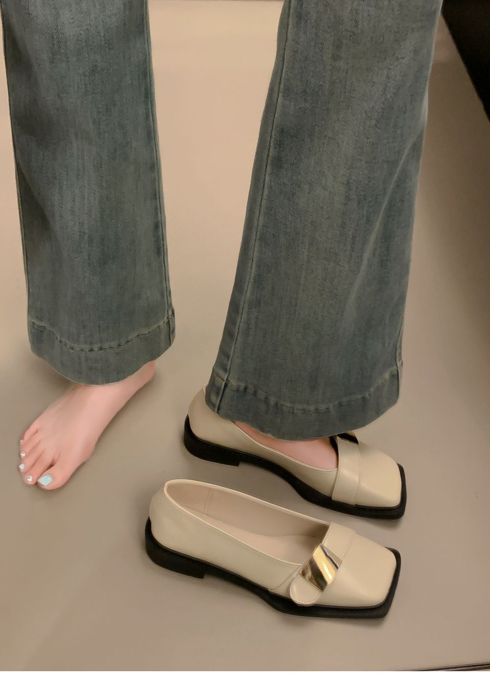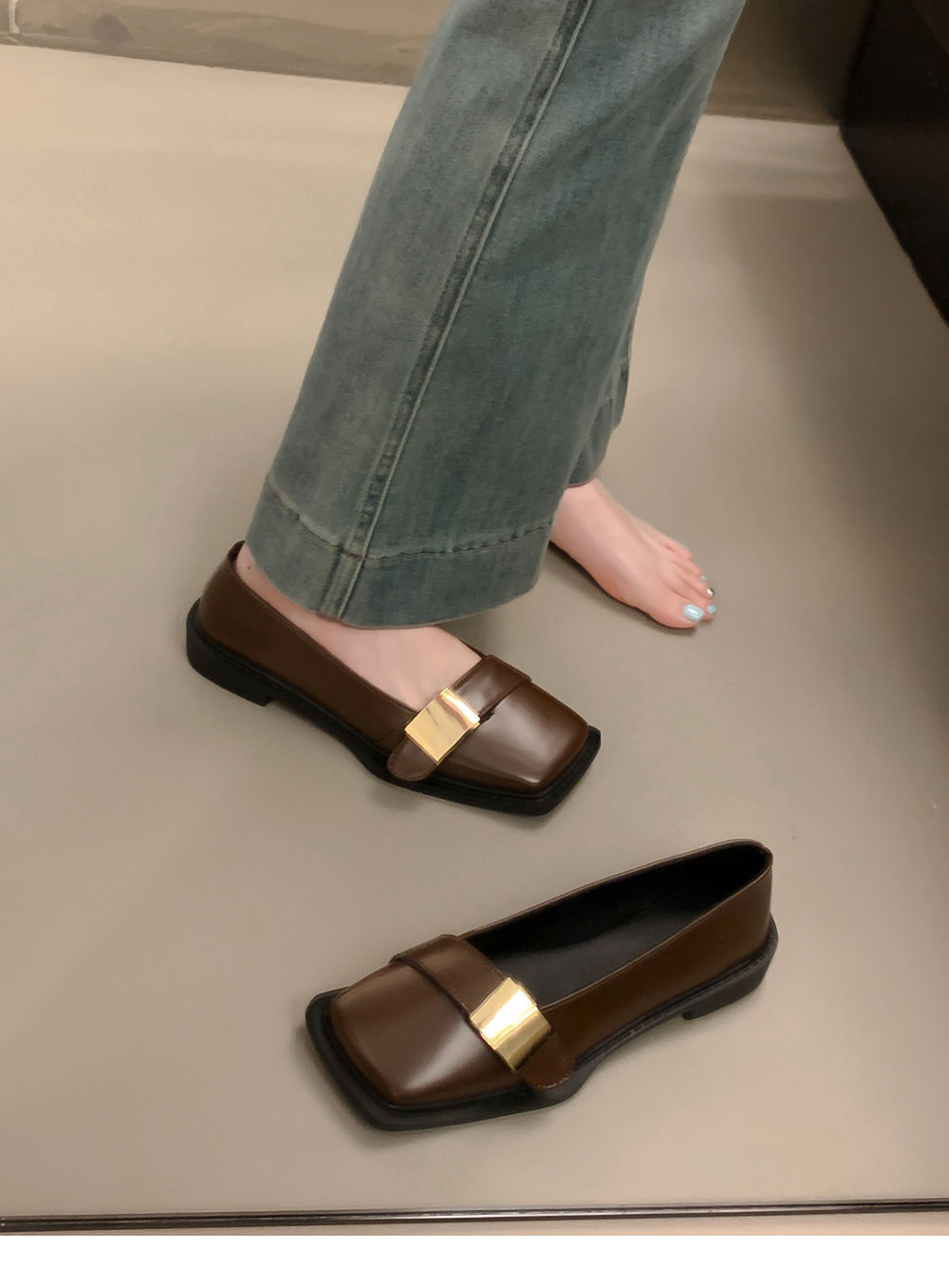 레트로 영국풍 메탈 버클 슈즈 2025 신상 스퀘어토 소프트솔 로퍼 여성 슬립온 가죽 슈즈스토어 가기