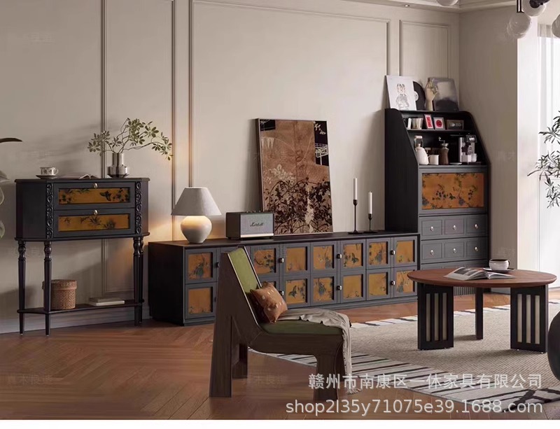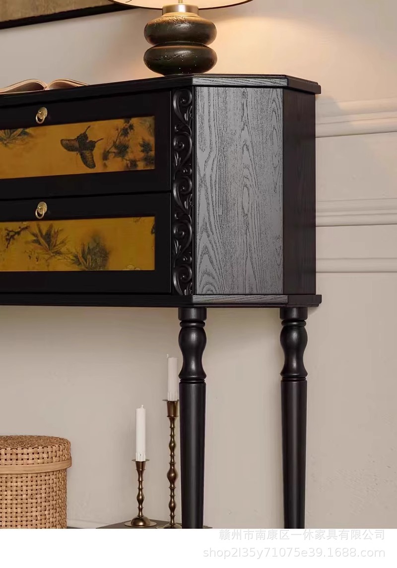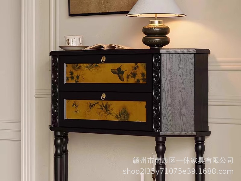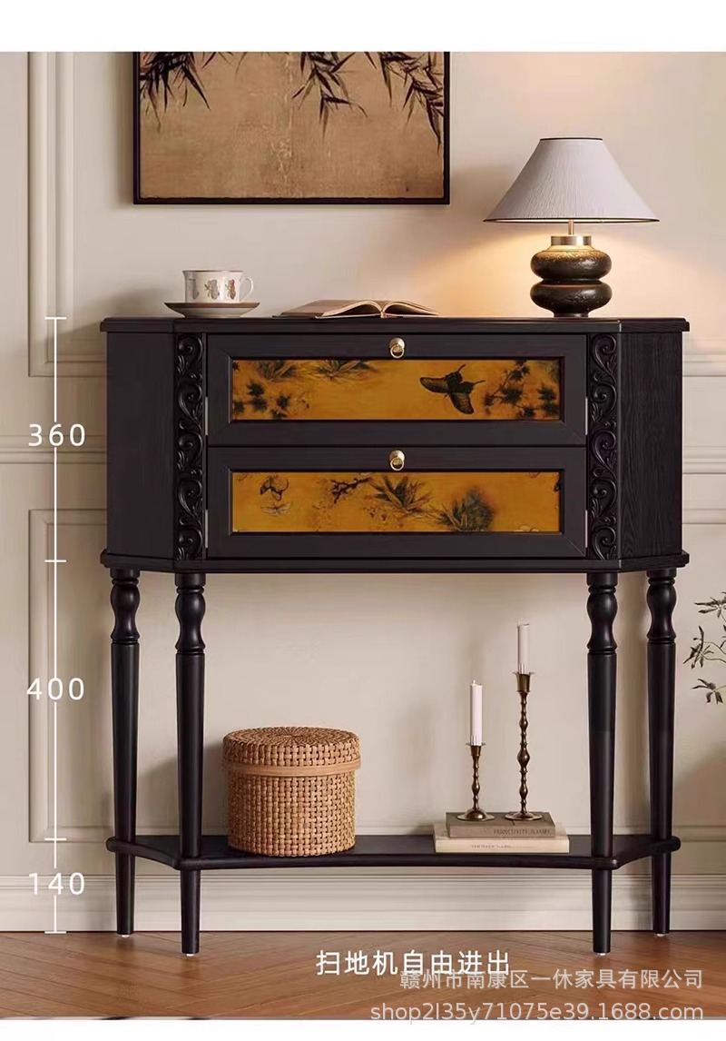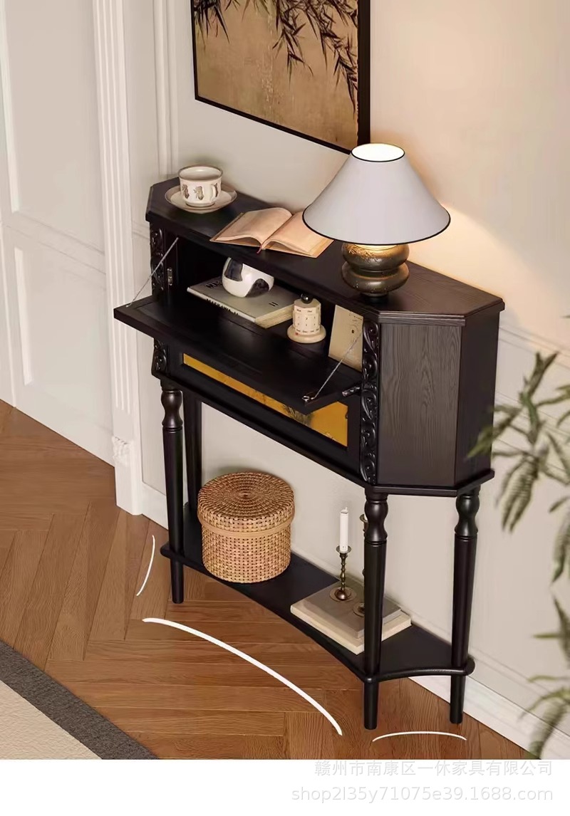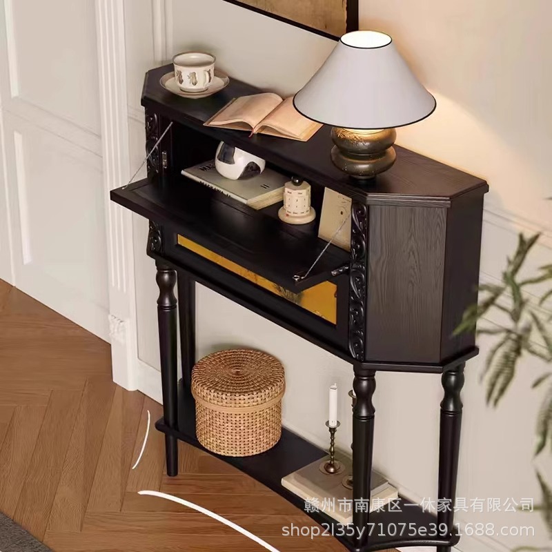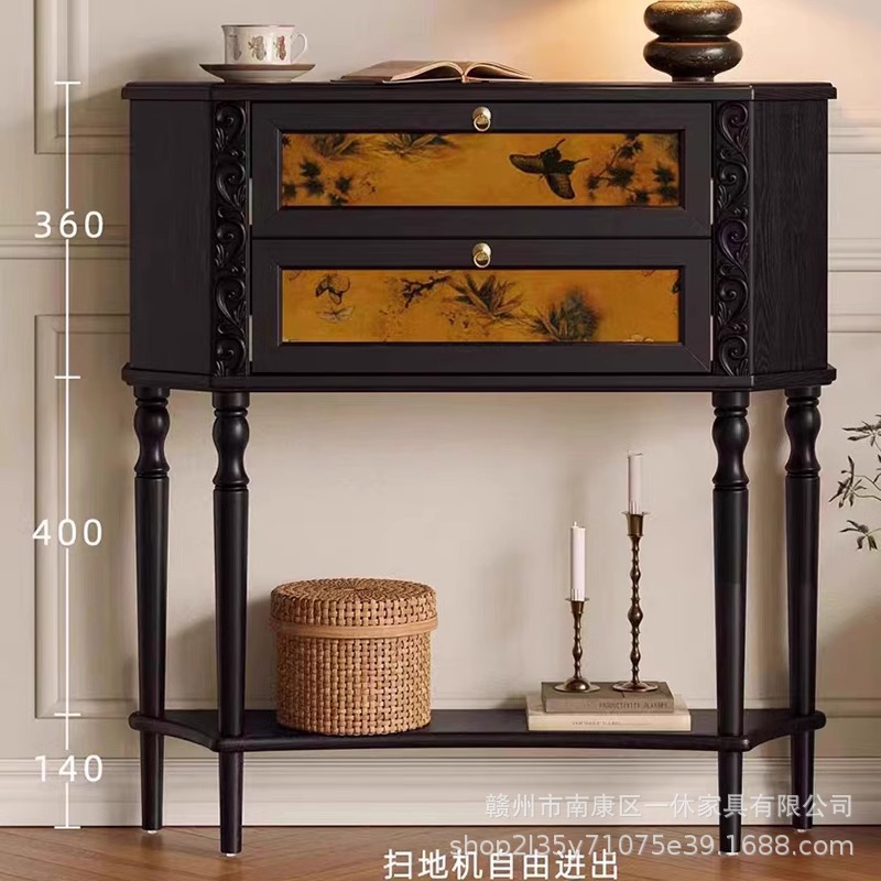 프랑스 빈티지 입구 캐비닛 솔리드 우드 블랙 샹윤 원사 거실 홈 장식 캐비닛 골동품 디스플레이 캐비닛 입구 테이블