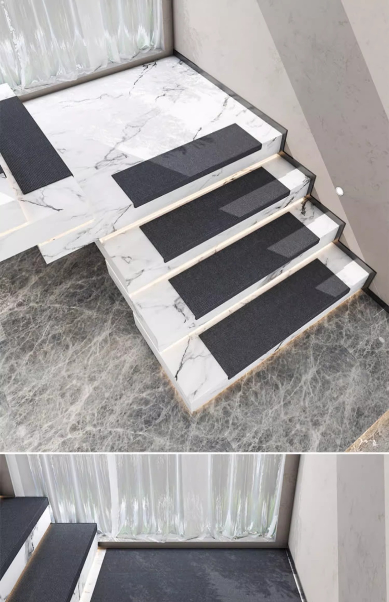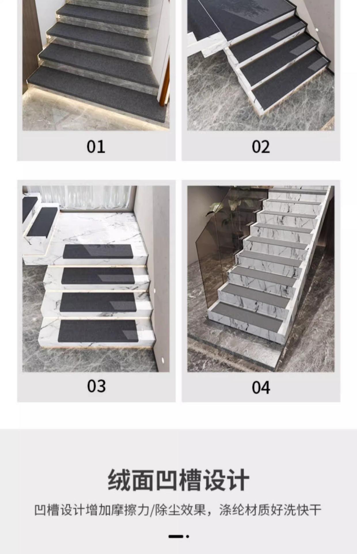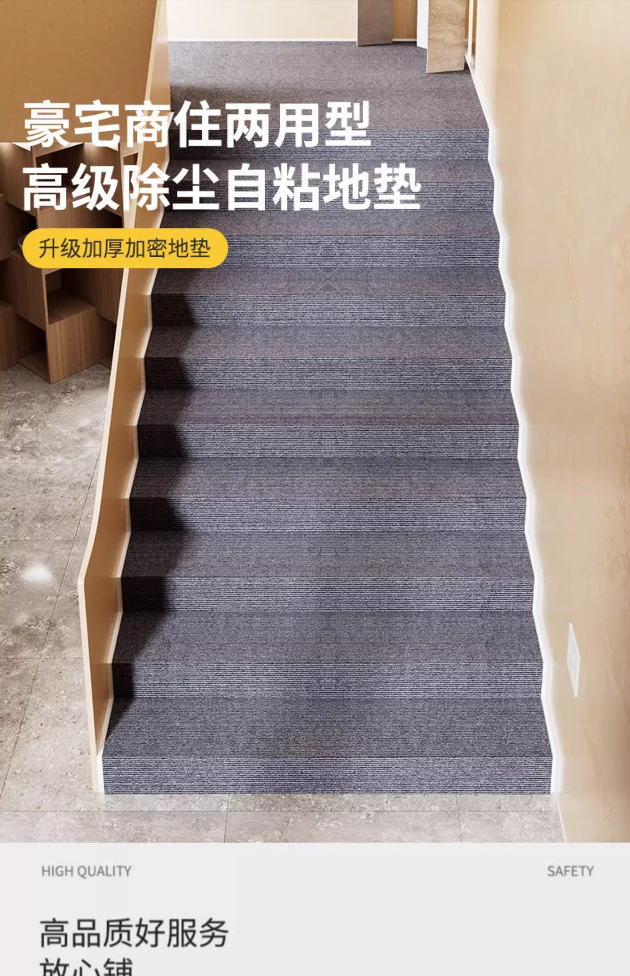 맞춤형 줄무늬 접착제가 없는 이중 단계 바닥 매트 계단 단계 매트 미끄럼 방지 자체 접착 긴 카펫 제조 업체 도매스토어 가기