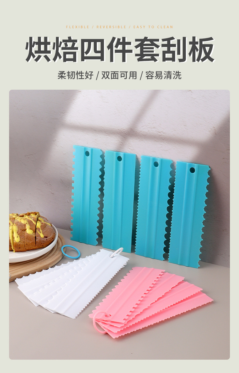 케이크 스크레이퍼 가정용 이중면 크림 스크레이퍼 베이킹 모델링 4피스 플라스틱 pp 주방 도구 도매
