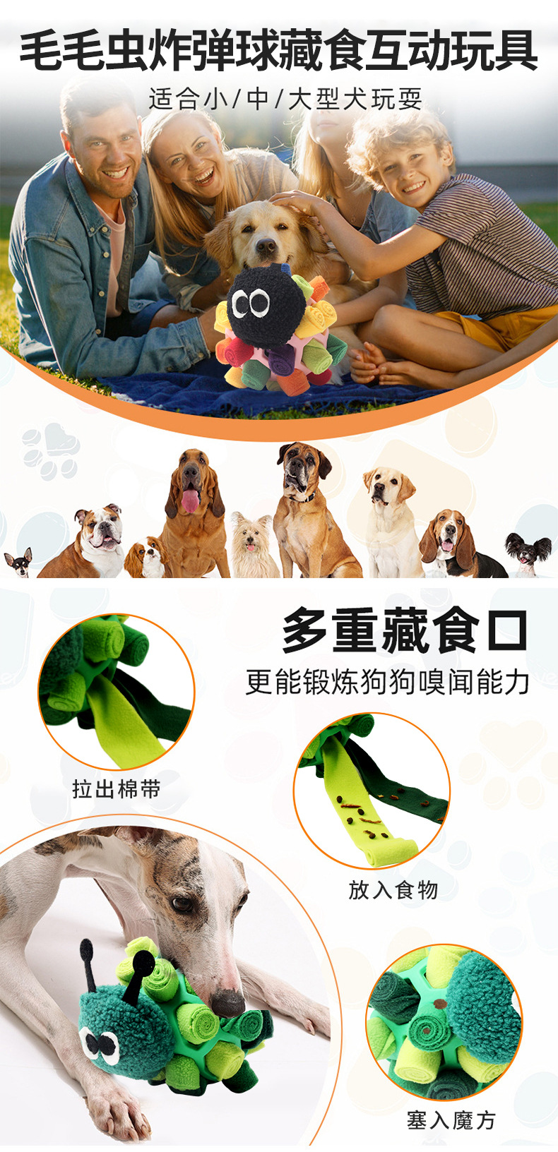 캐터필라 애완 동물 냄새 패드 숨겨진 음식 공 개 퍼즐 고양이 다기능 고무 공 빈 공 튀긴 공