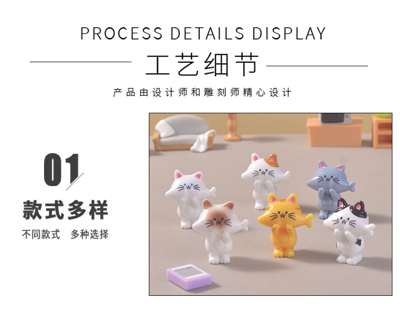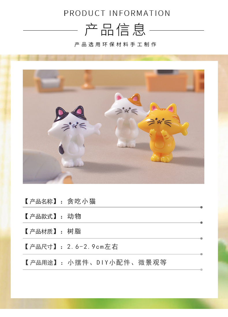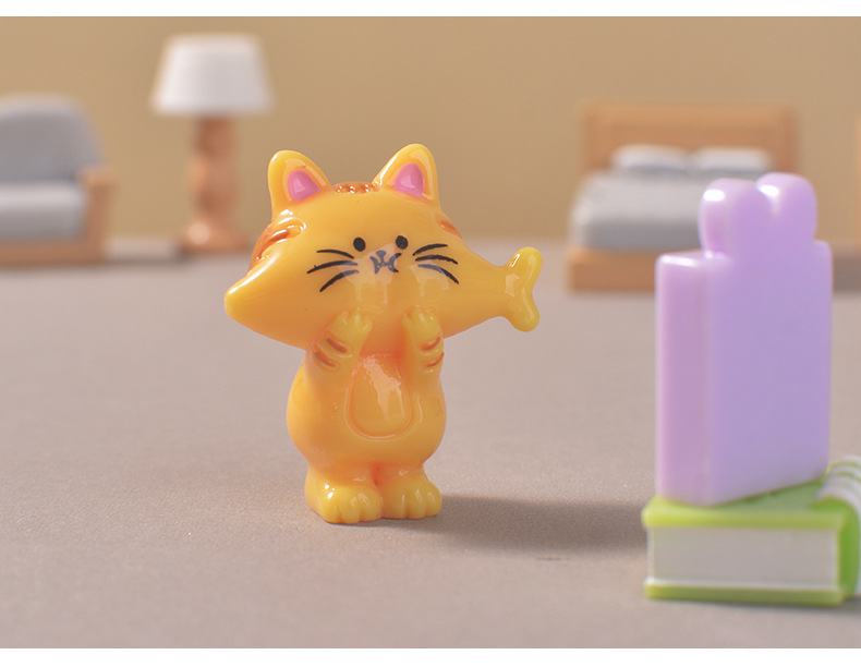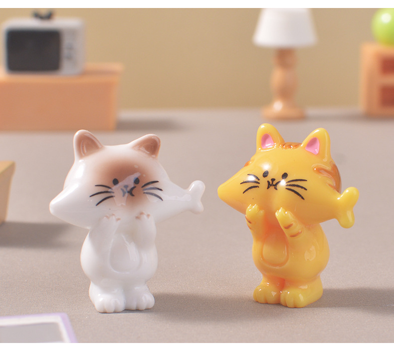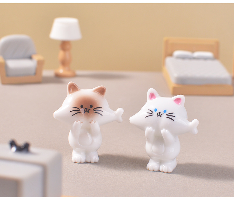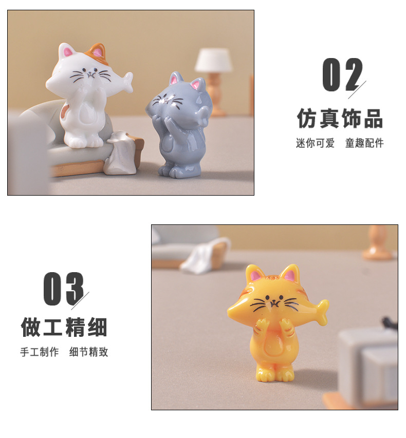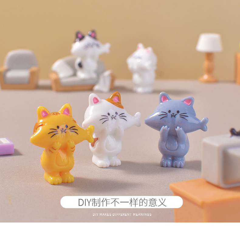 국경을 넘는 만화같이 귀여운 고양이가 음식을 훔치는 미니어처 풍경 데스크탑 장식 소품, 귀여운 고양이 DIY 소품