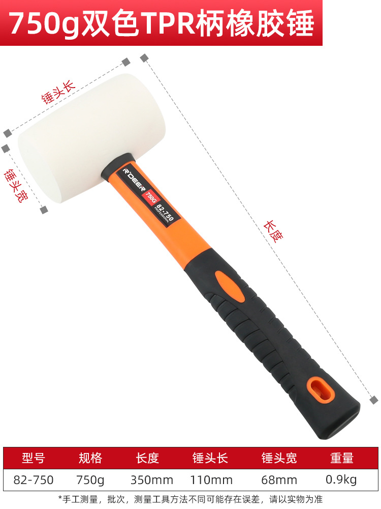 • 82-750 TPR 핸들 고무 해머 750g