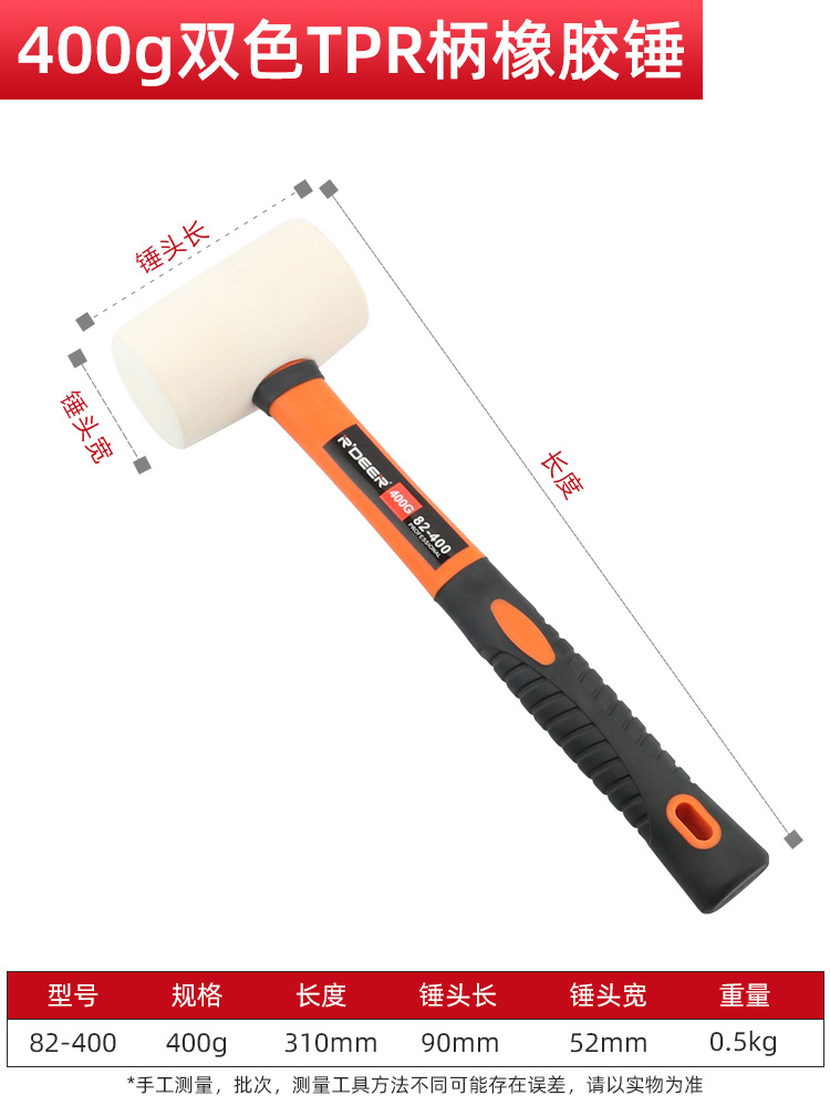 • 82-400 TPR 핸들 고무 해머 400g