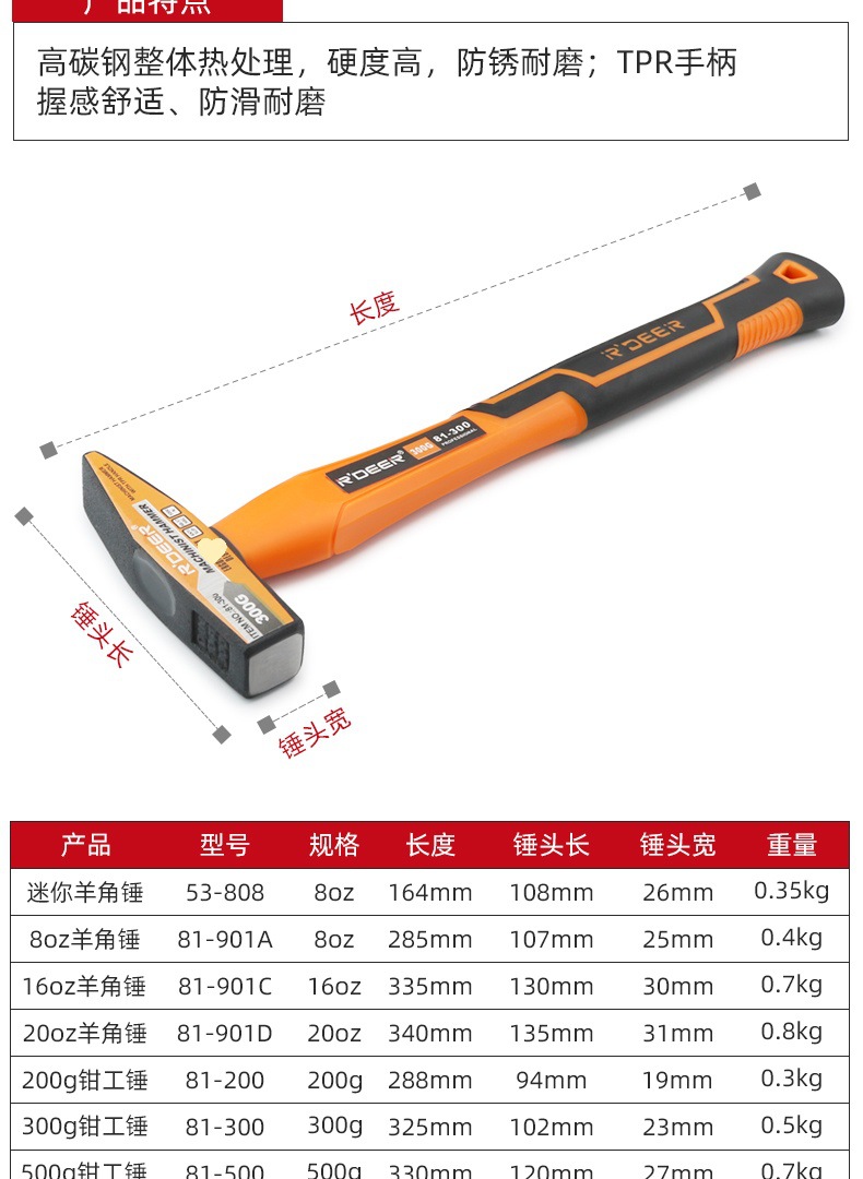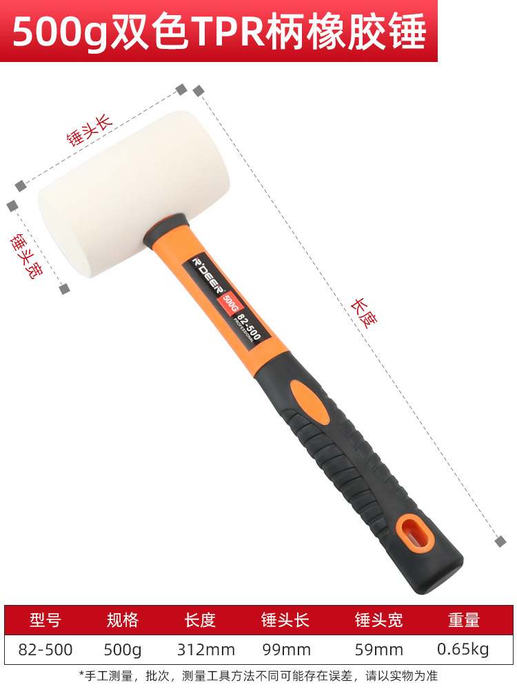 • 82-500 TPR 핸들 고무 해머 500g