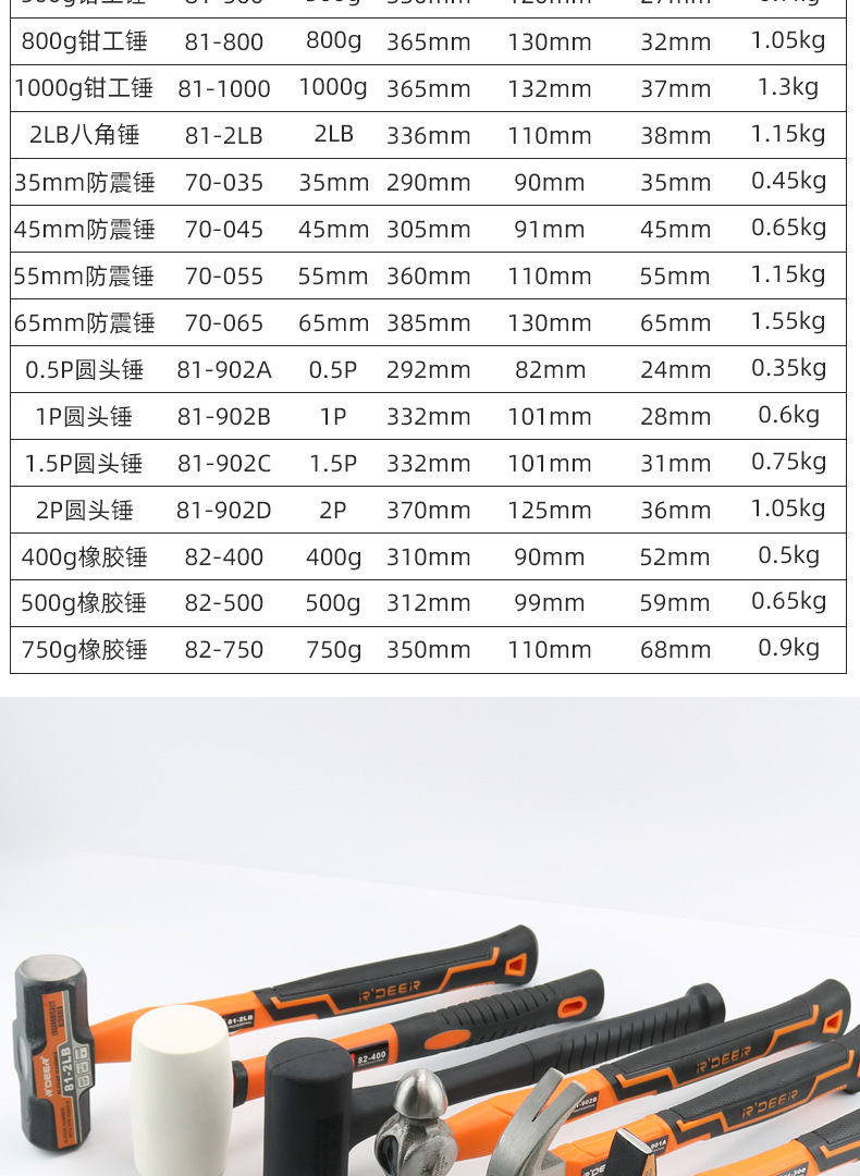• 70-065 고무 충격 방지 해머 65mm