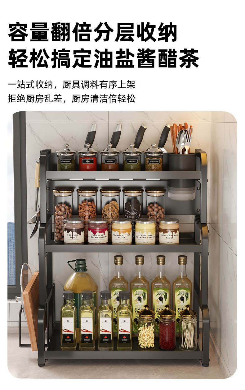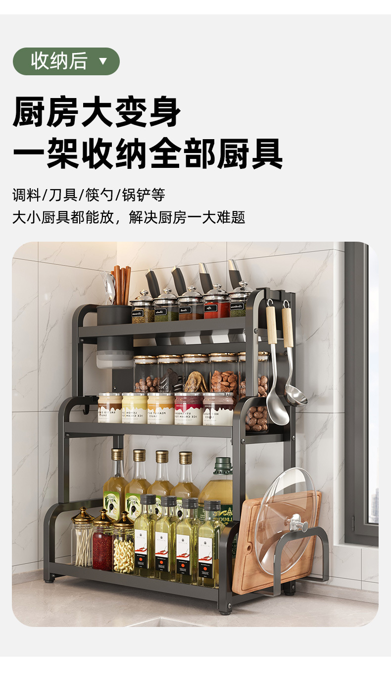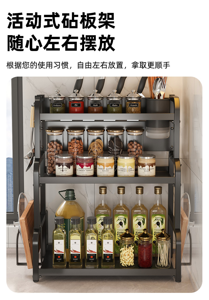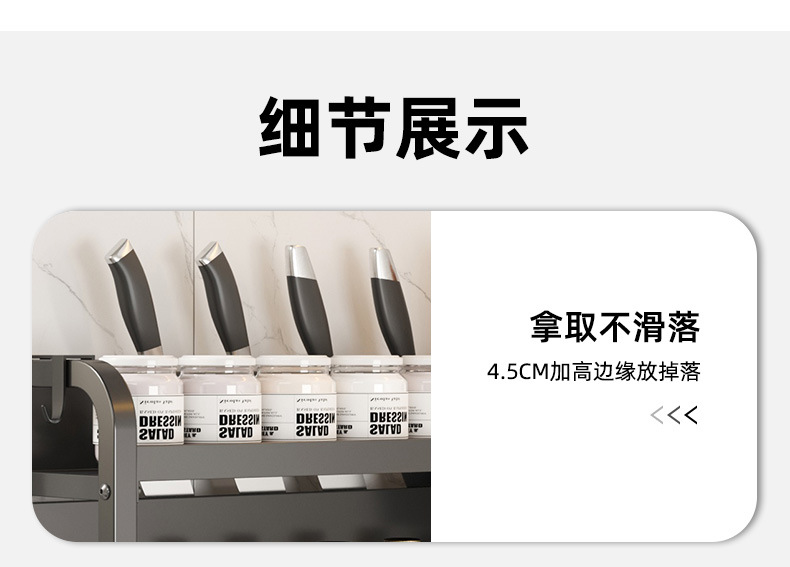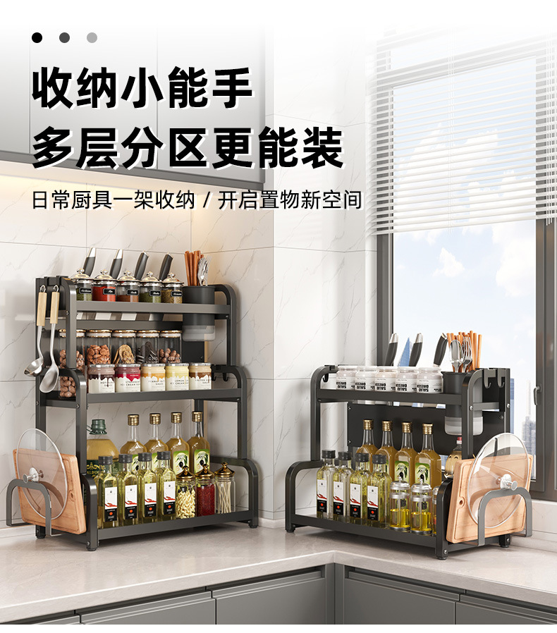 주방 세부 사항 저장 랙 다기능 조리대 탄소 강철 커팅 보드 젓가락 홀더 주방 나이프 랙 다층 스토리지 랙