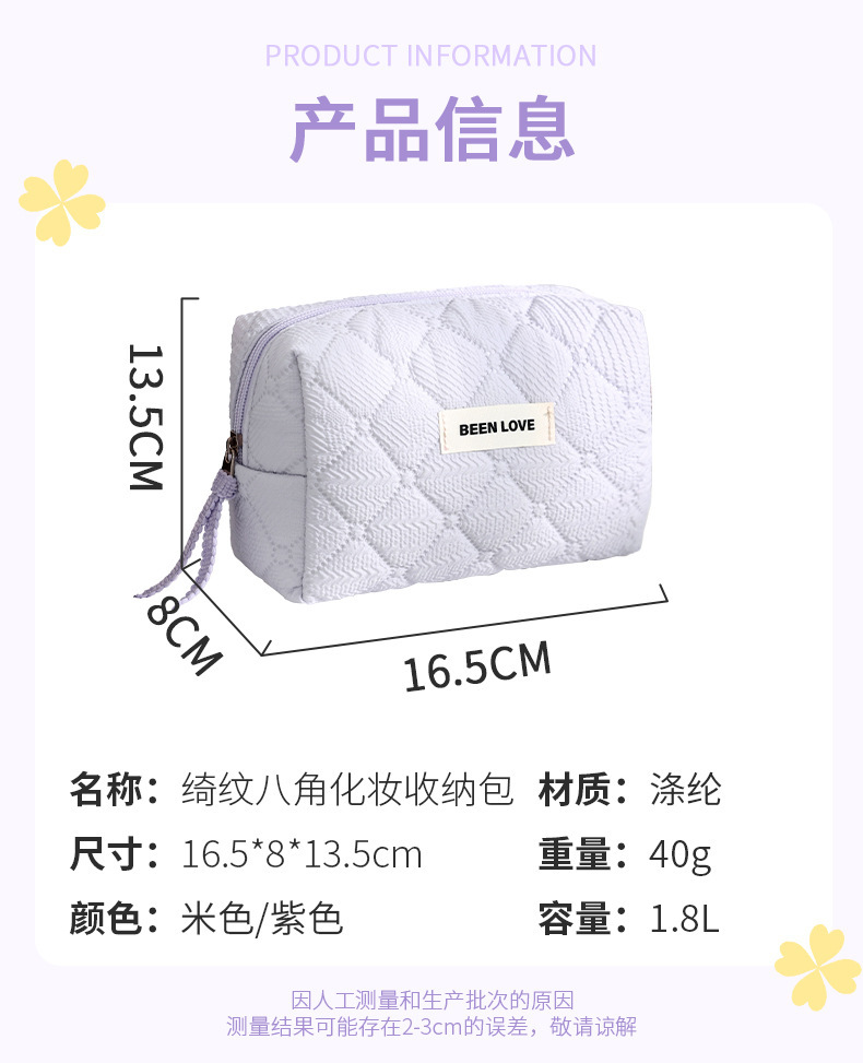 고급스러운 패턴의 세면도구 팔각형 화장품 가방, 귀여운 소녀들을 위한 여행용 휴대용 맞춤형 수납 가방스토어 가기