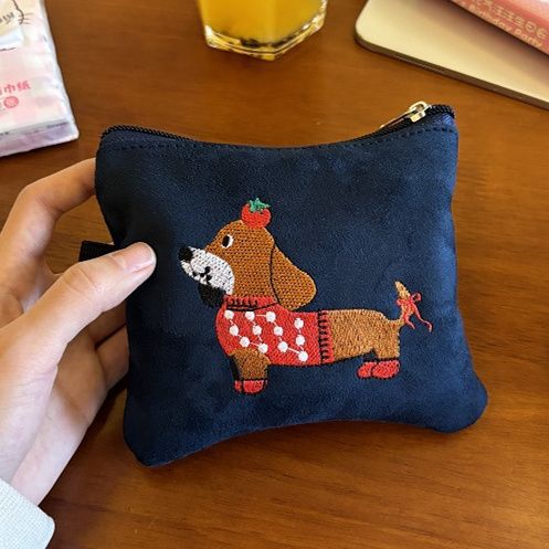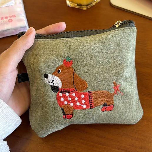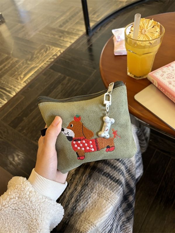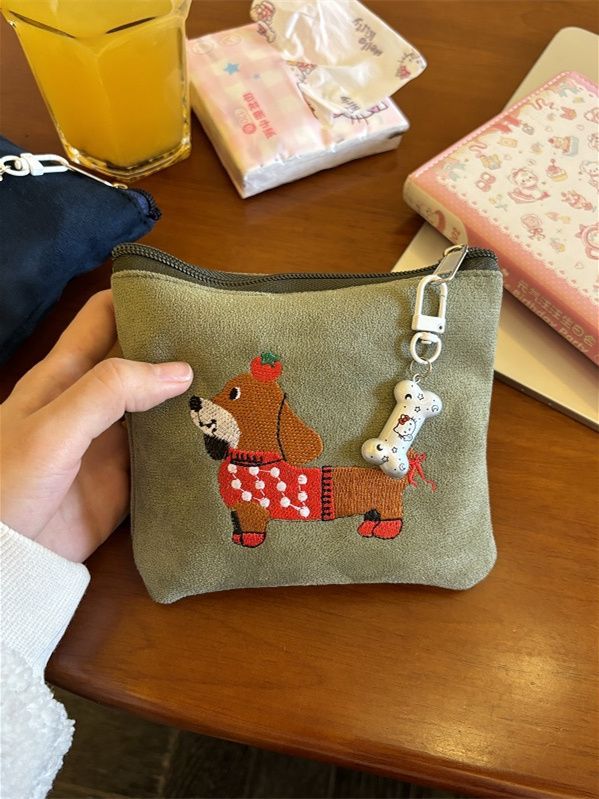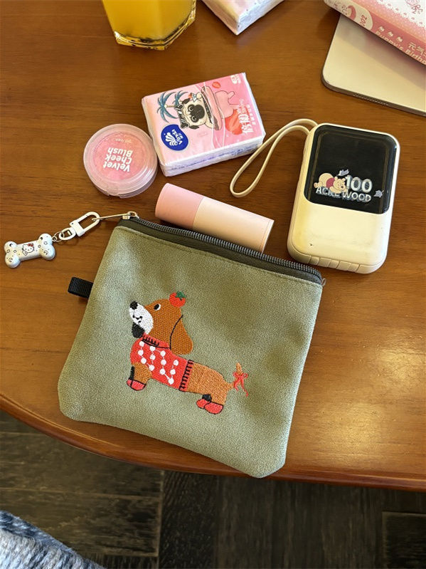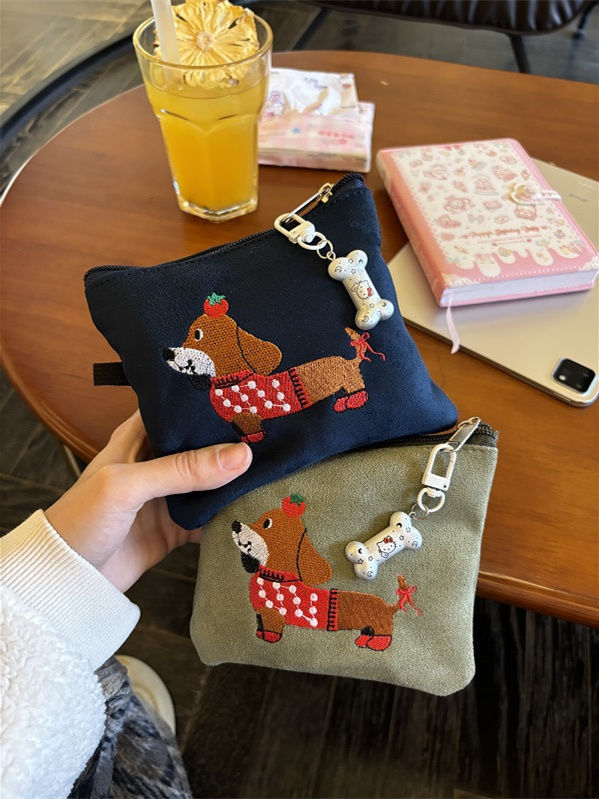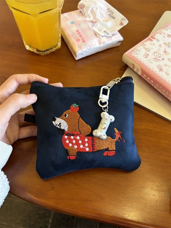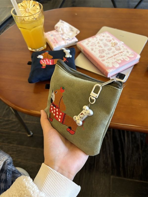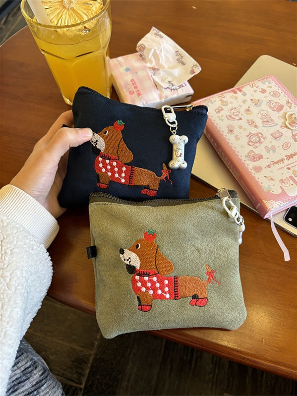 귀여운 스웨이드 닥스 훈트 개 카드 가방 여성용 헤드폰 립스틱 이모 타월 화장품 가방 발신 휴대용 휴대 가방스토어 가기