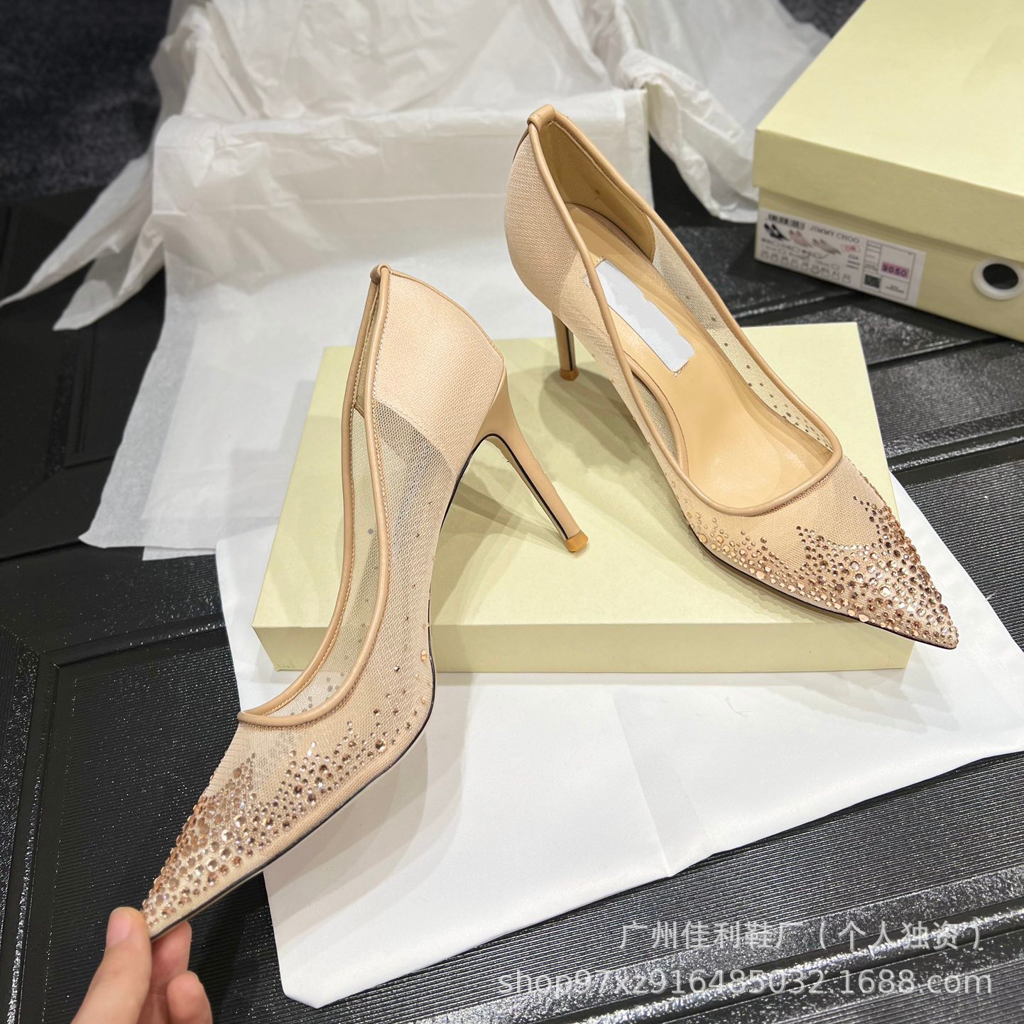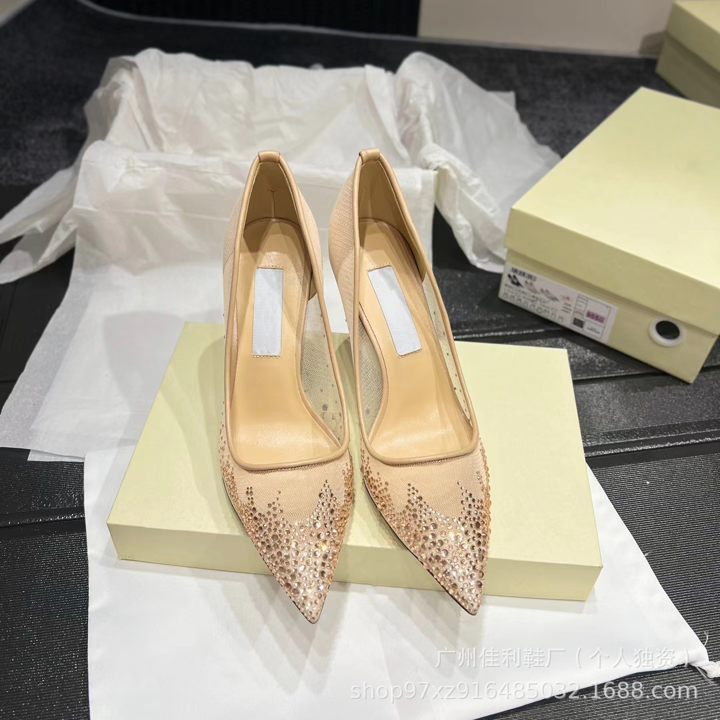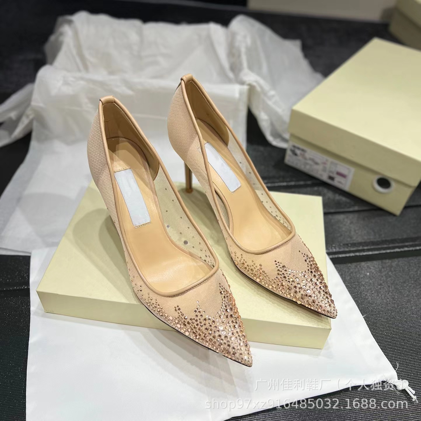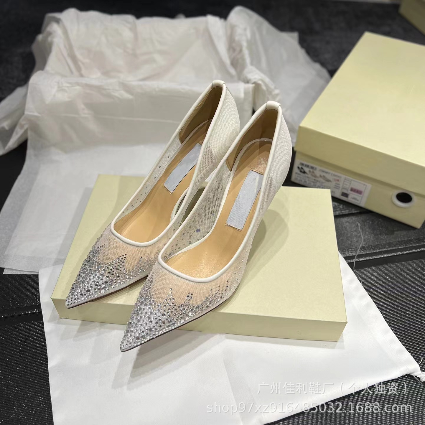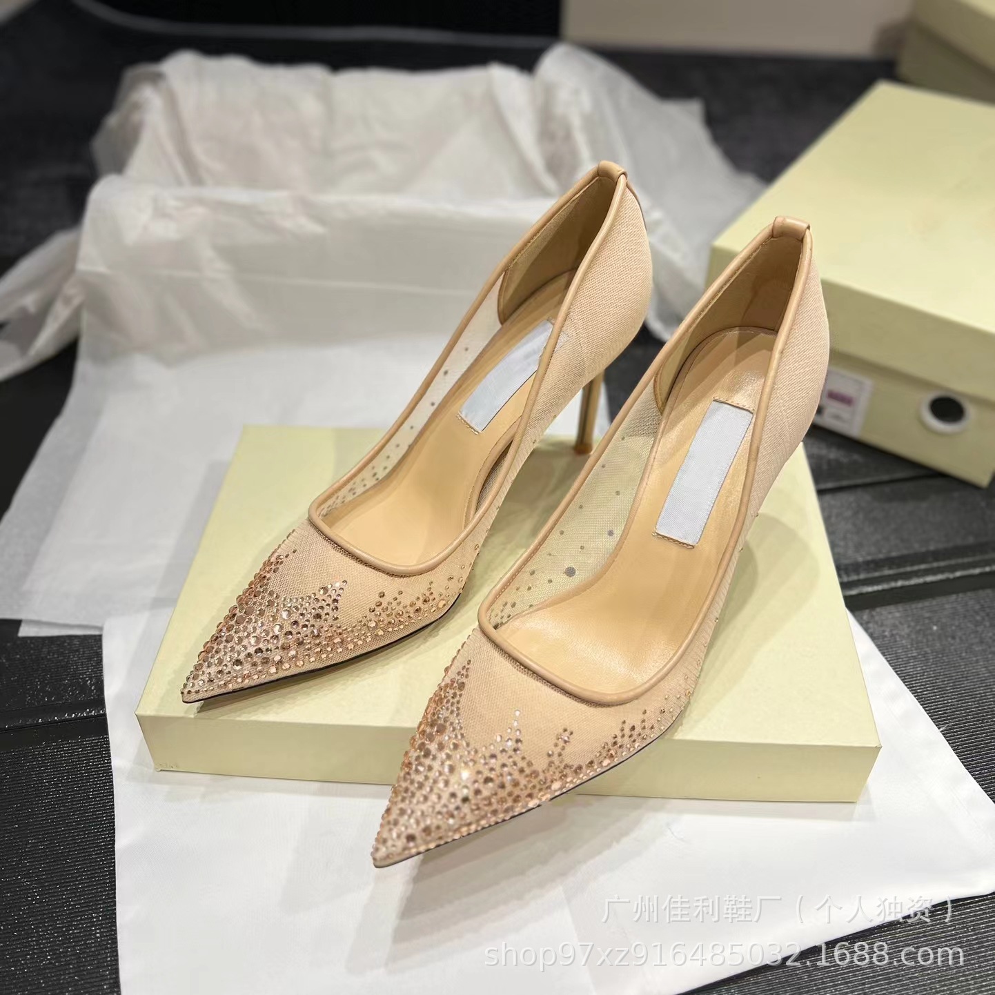 뾰족한 우아한 하이힐 여성의 2024 새로운 패션 얕은 메쉬 라인스톤 싱글 신발 통근 스틸레토 힐 하이힐 여성스토어 가기