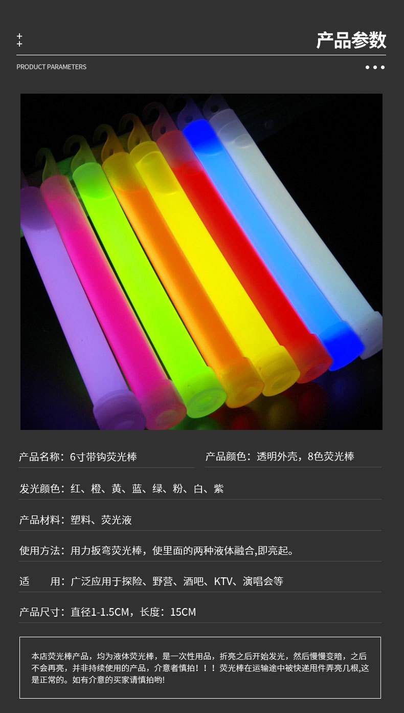 6 인치 형광 스틱 6 인치 발광 스틱 조명 비상 15*150MM 야외 캠핑 도움 발광 제조 업체스토어 가기