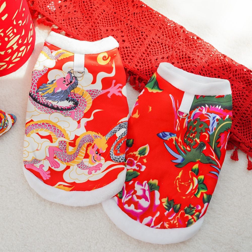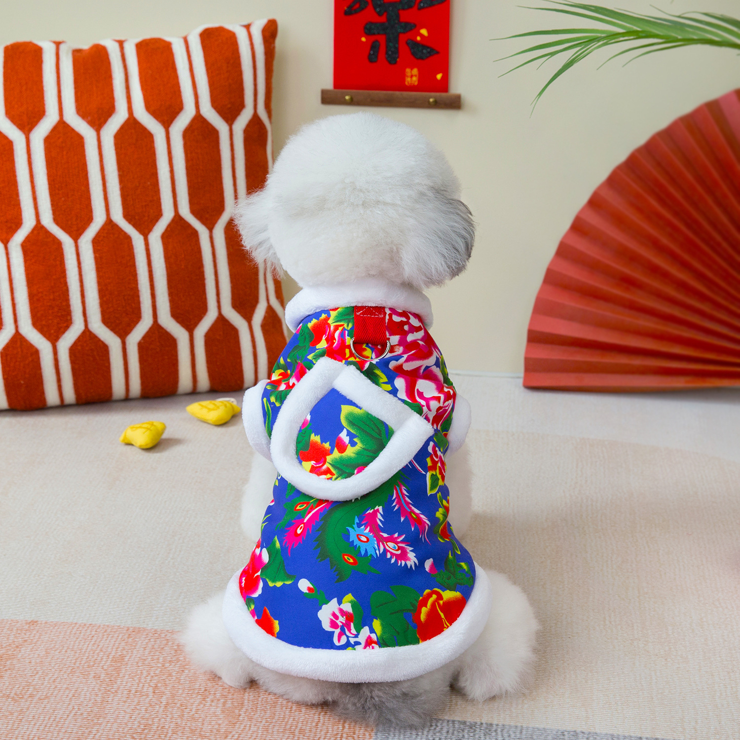 애완견 고양이 가을과 겨울 새해 옷 공급 북동쪽 큰 꽃 용 테디 베어 코지 골든 리트리버 도매