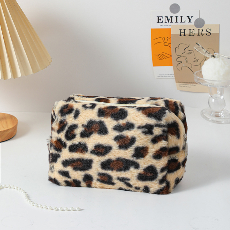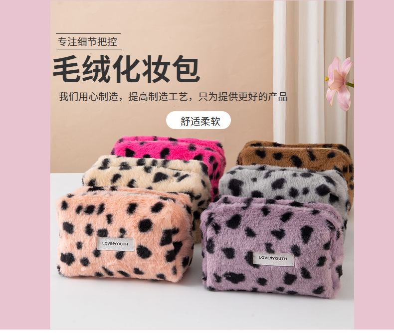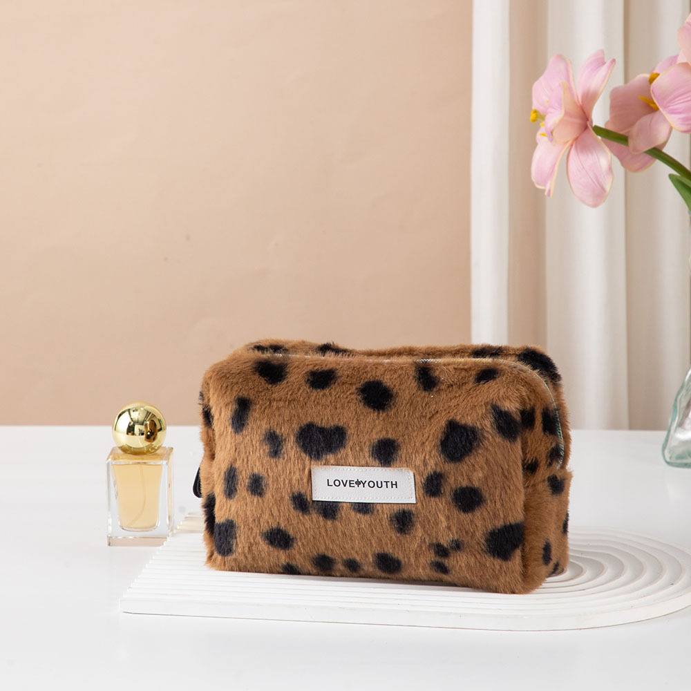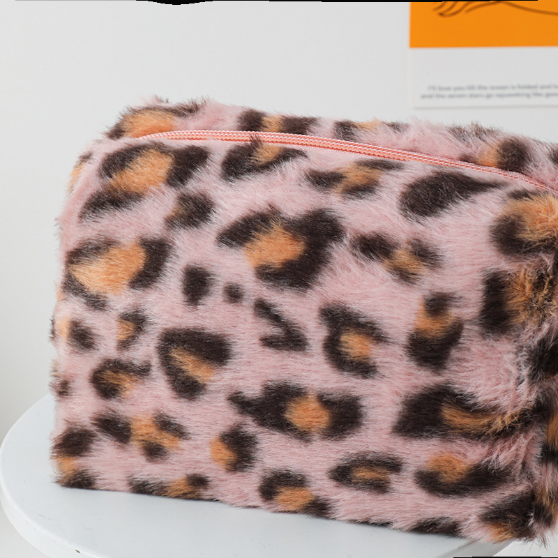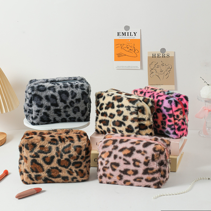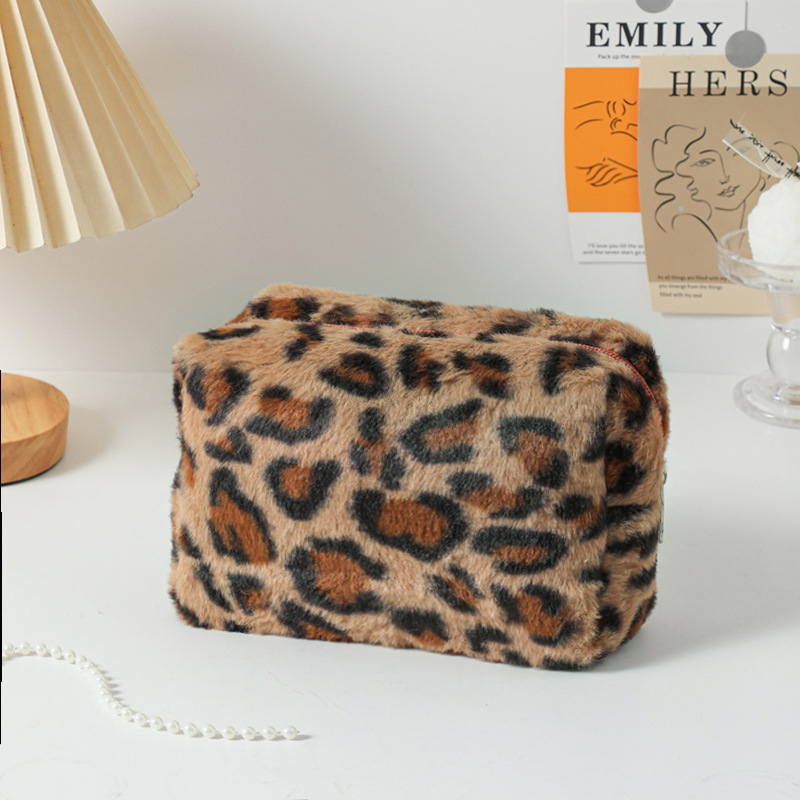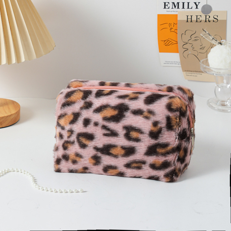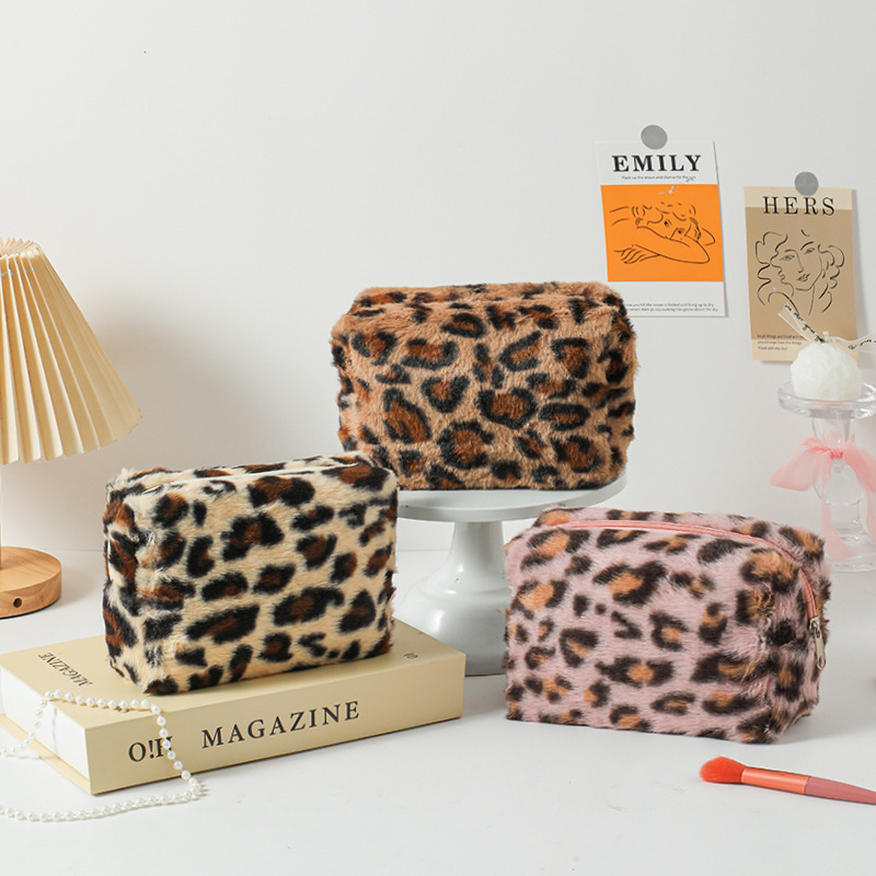 신제품 레오파드 프린트 플러시 화장품 가방 대용량 휴대용 여행용 스킨케어 제품 수납 가방 화장품 수납 가방