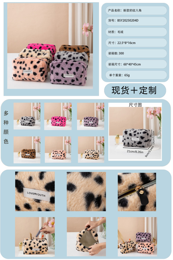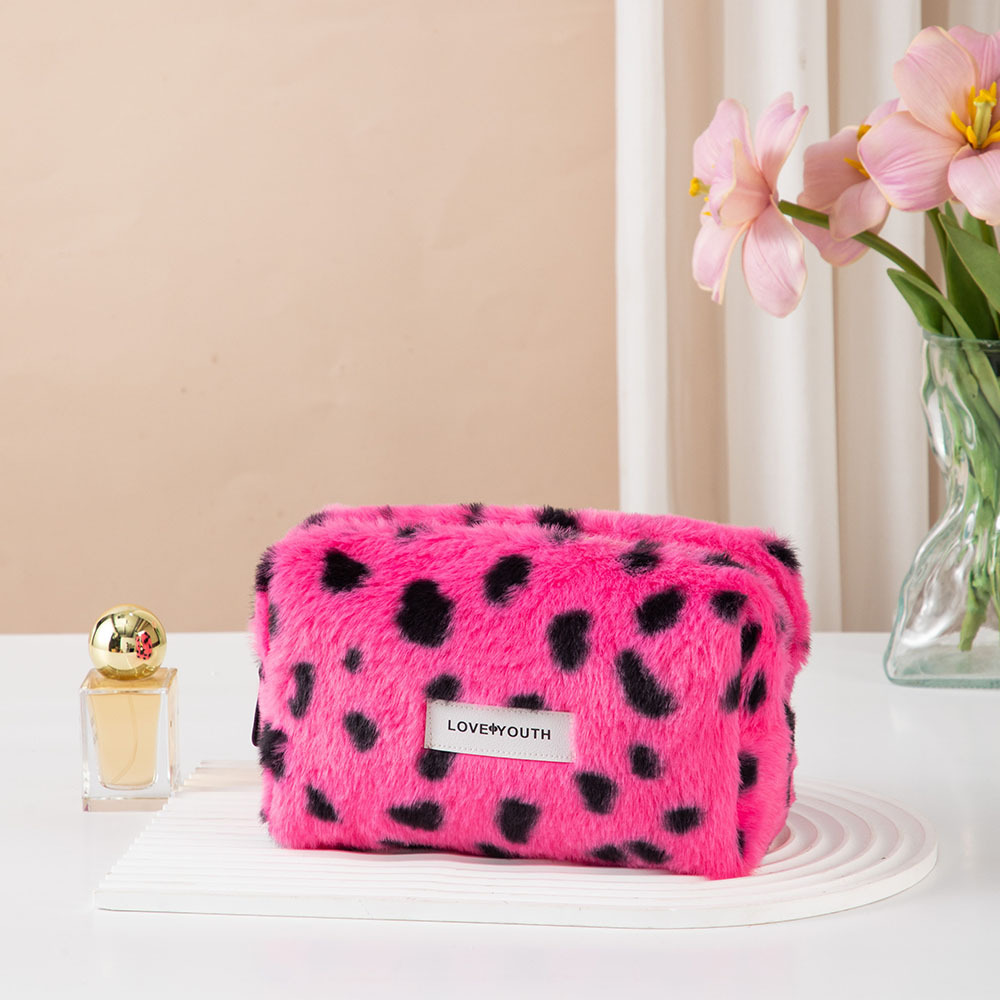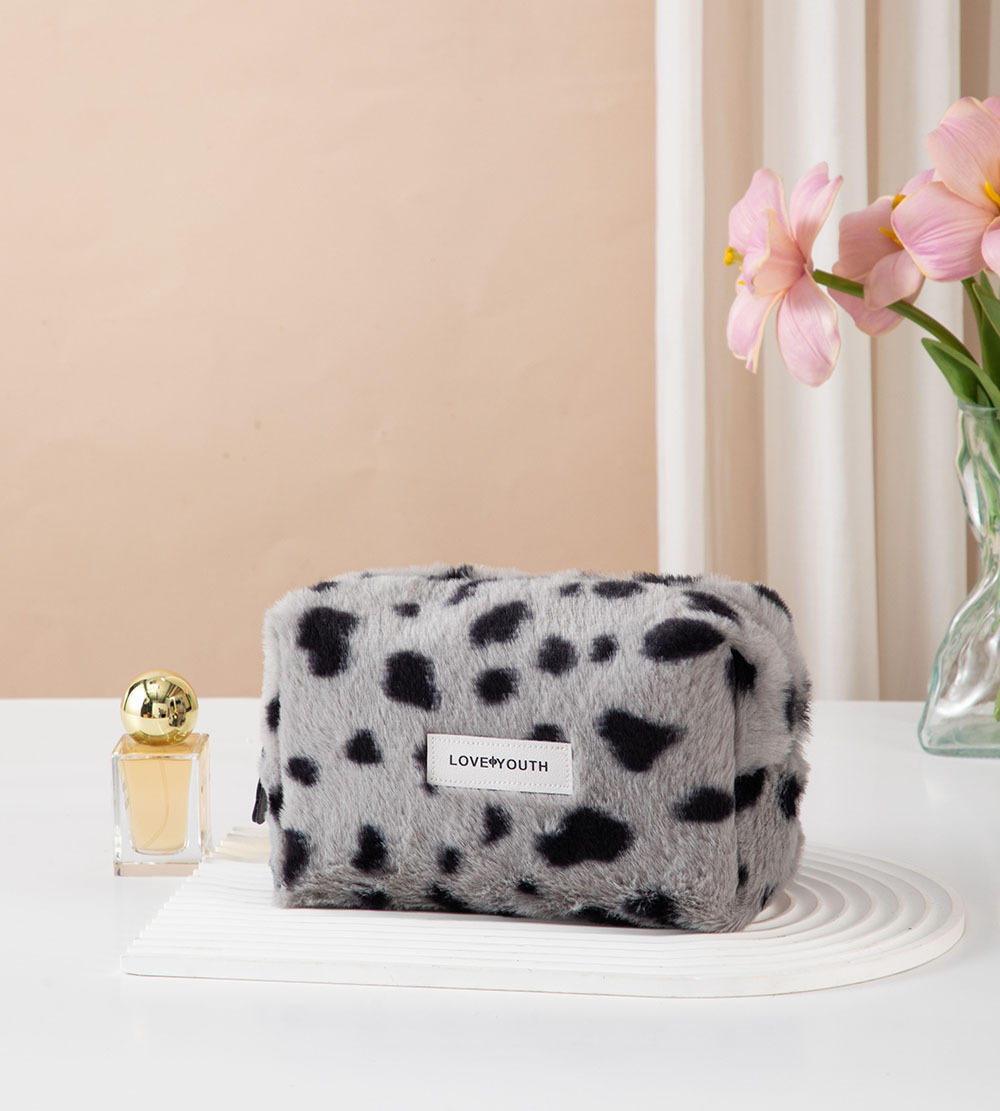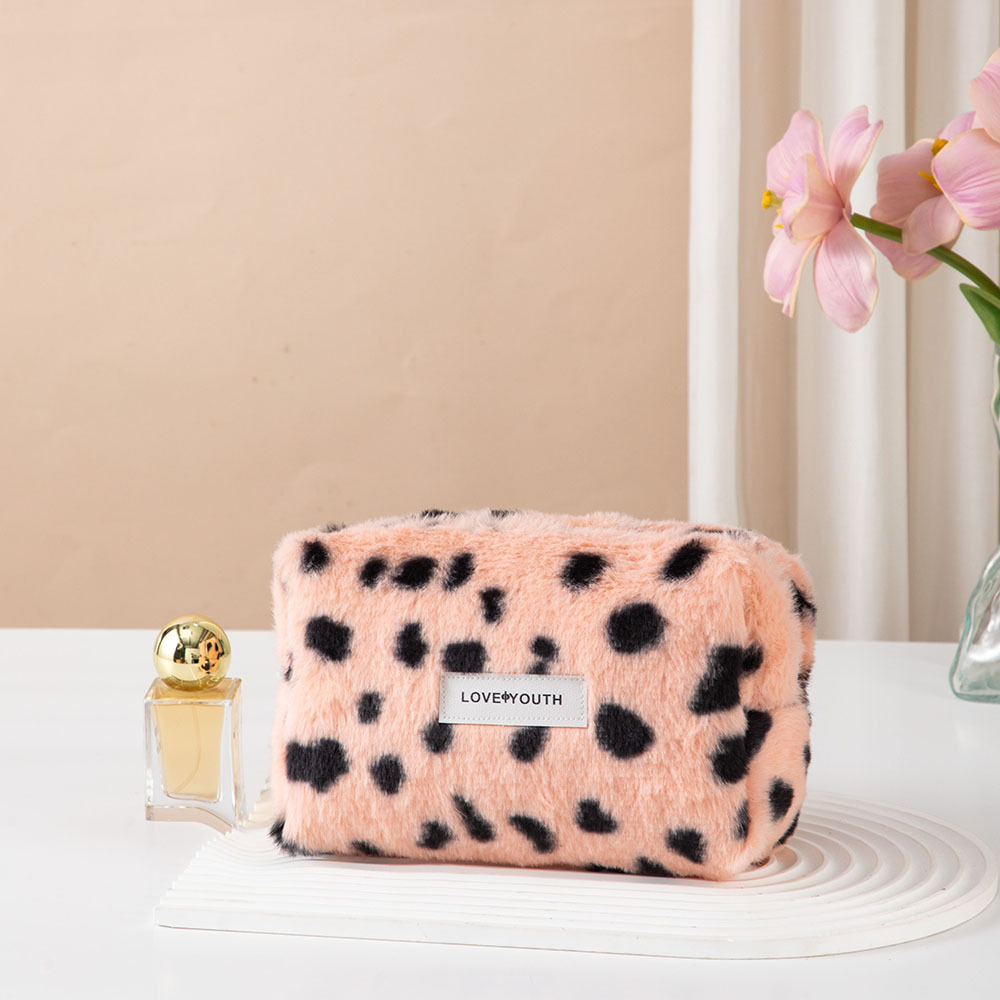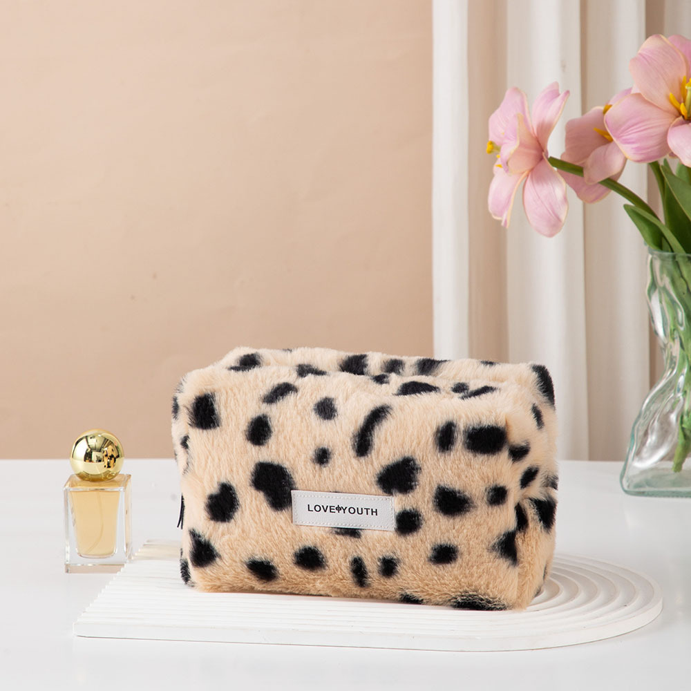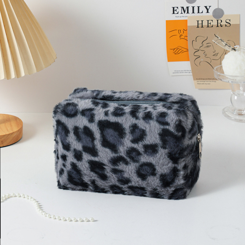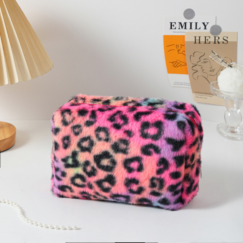 신제품 레오파드 프린트 플러시 화장품 가방 대용량 휴대용 여행용 스킨케어 제품 수납 가방 화장품 수납 가방
