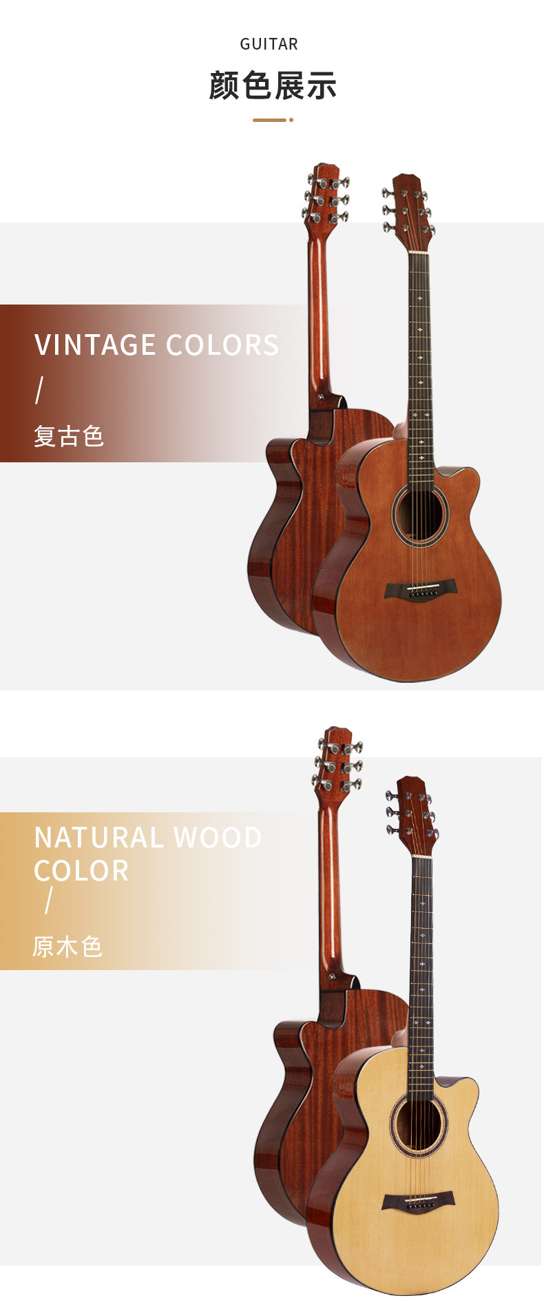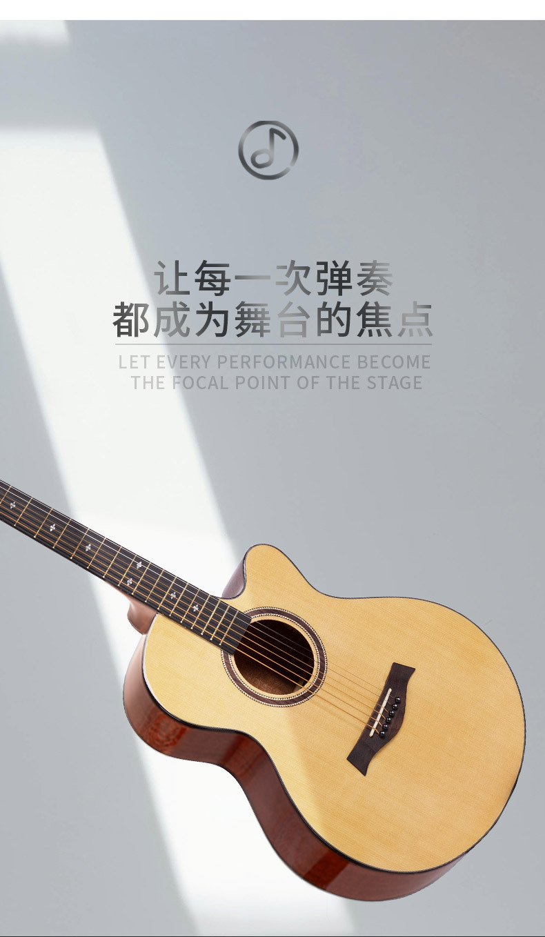 밝은 싱글 기타 40 인치 스프루스 싱글 보드 성인 포크 기타 악기 공장 아울렛스토어 가기