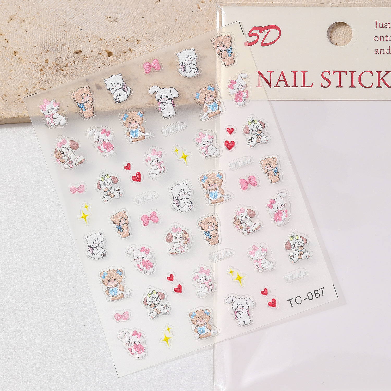 산리오 가족 만화 5D 양각 입체 작은 동물 네일 아트 스티커 쿠로미 고양이 토끼 네일 아트 스티커