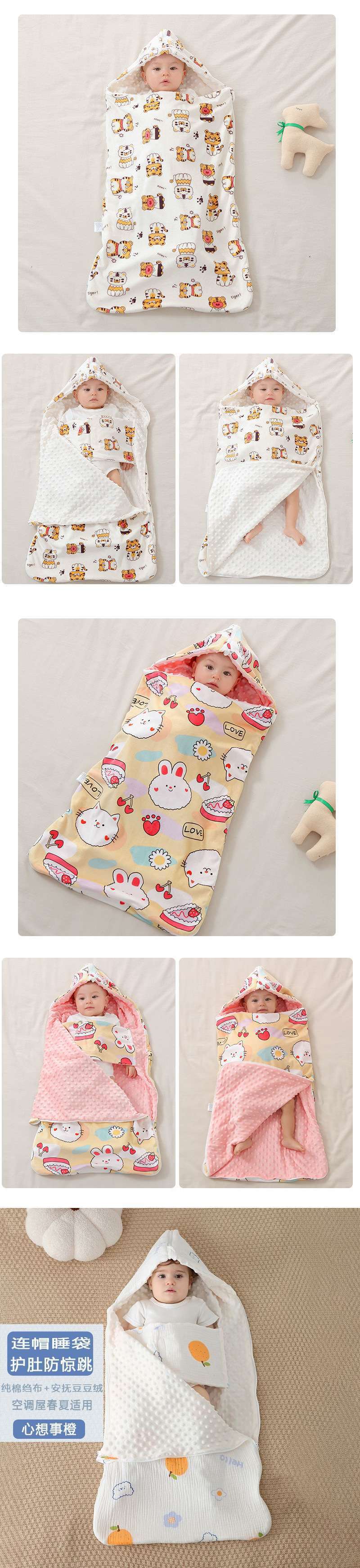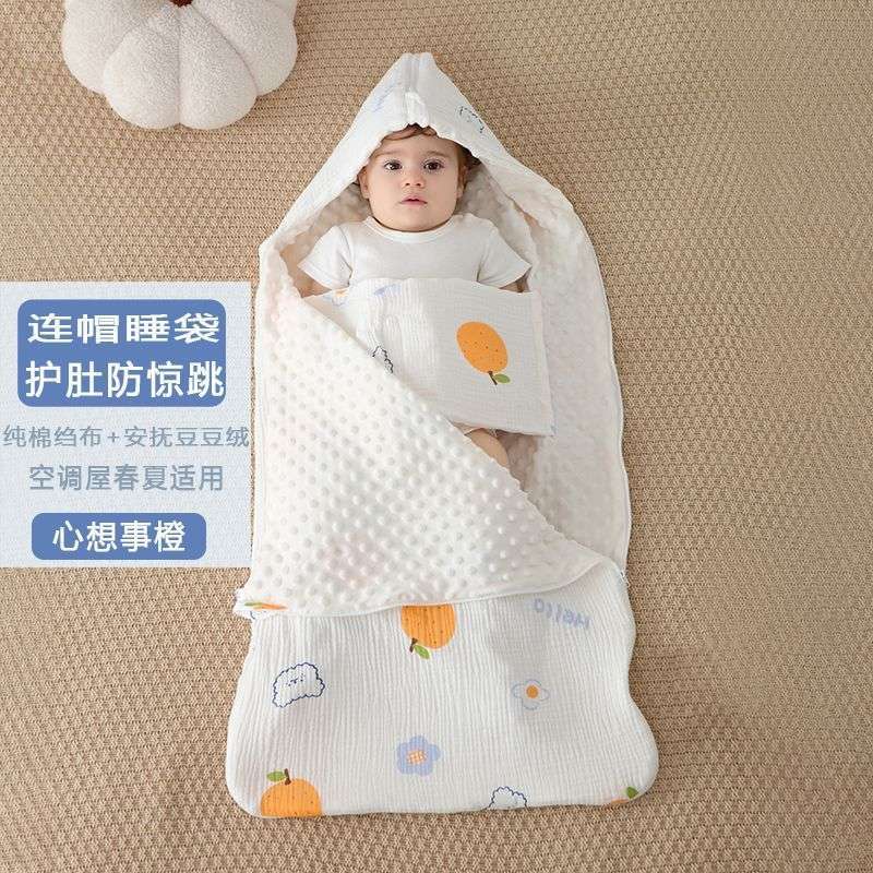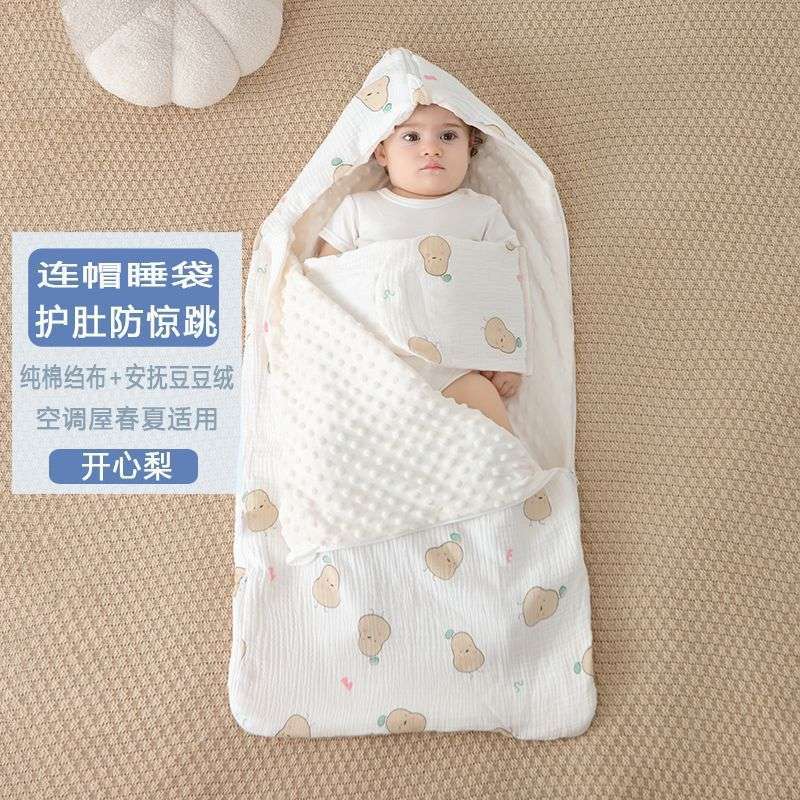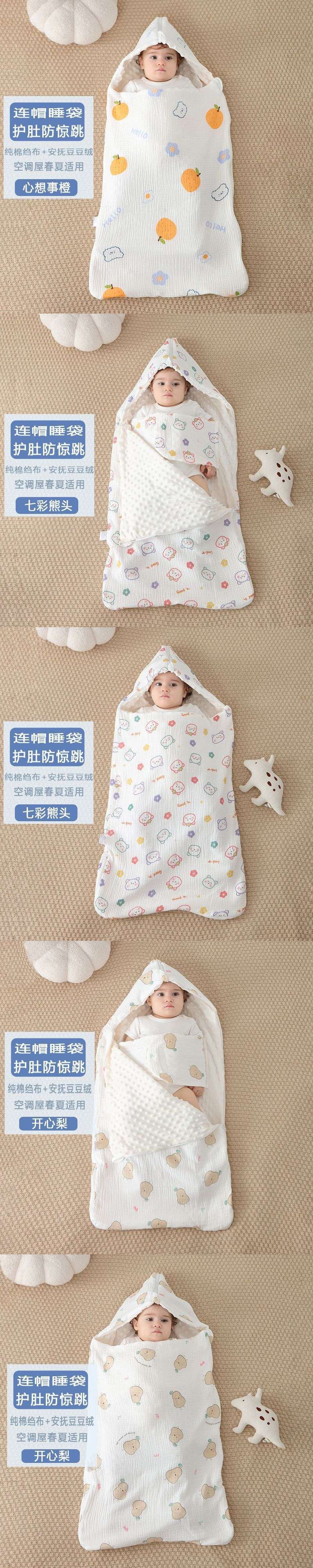 • [후드 배꼽 보호 침낭] 봄 여름 크레이프 비니 해피 페어
