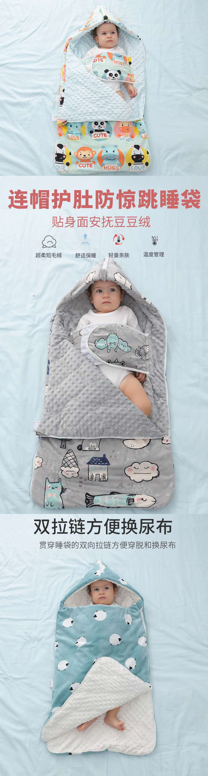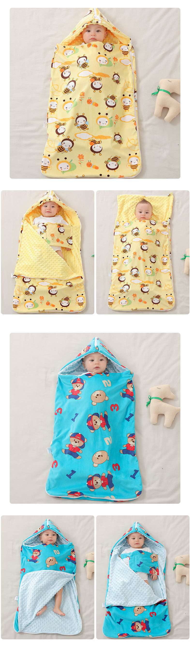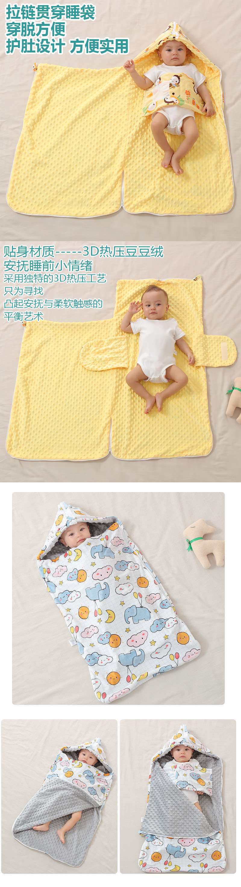 • [후드 배꼽 보호 침낭] 봄 여름 크레이프 비니 해피 페어