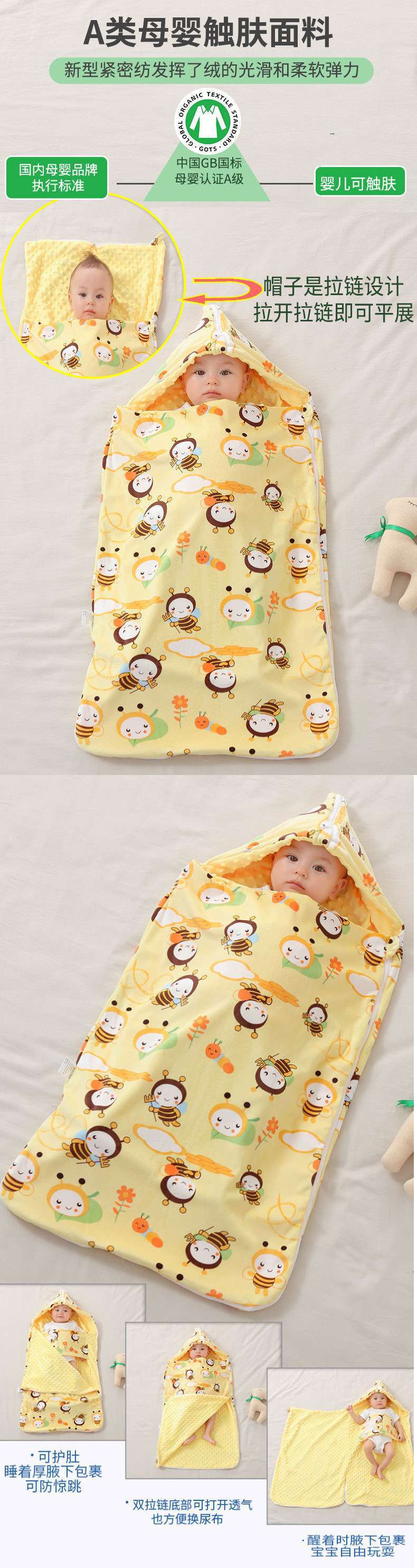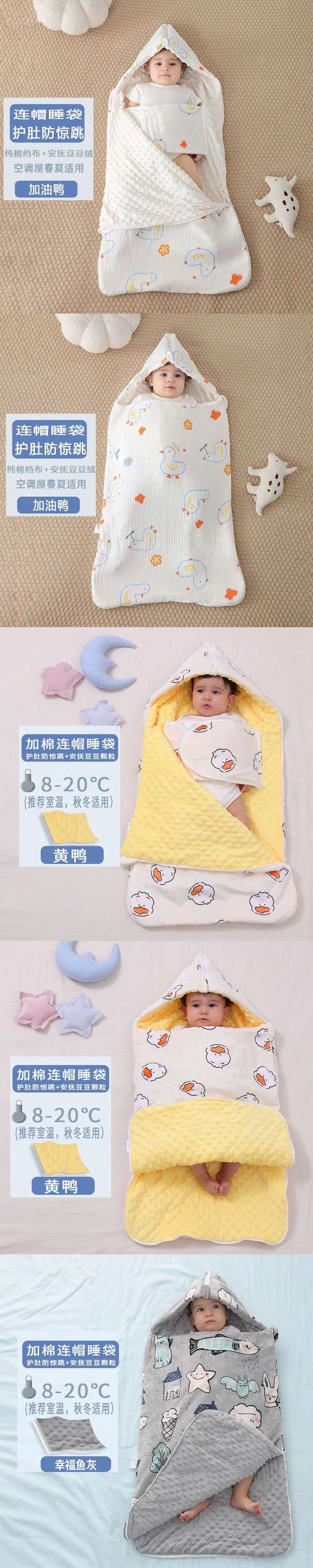 • [후드가 있는 배 보호 침낭] 봄 여름 크레이프 비니 어서 오리