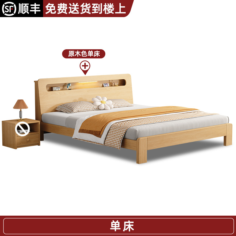 • 원목 컬러 싱글 침대 + 침대 옆 테이블 * 1 [위층 배송] 두꺼워지고 환경 친화적