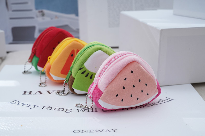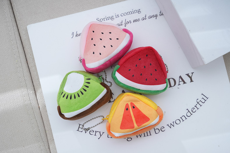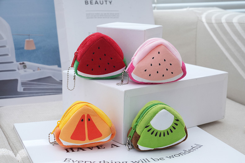 만화 어린이 휴일 선물 창조적 인 봉제 3 차원 삼각형 과일 동전 지갑 동전 가방 키 가방 매달려 장식품