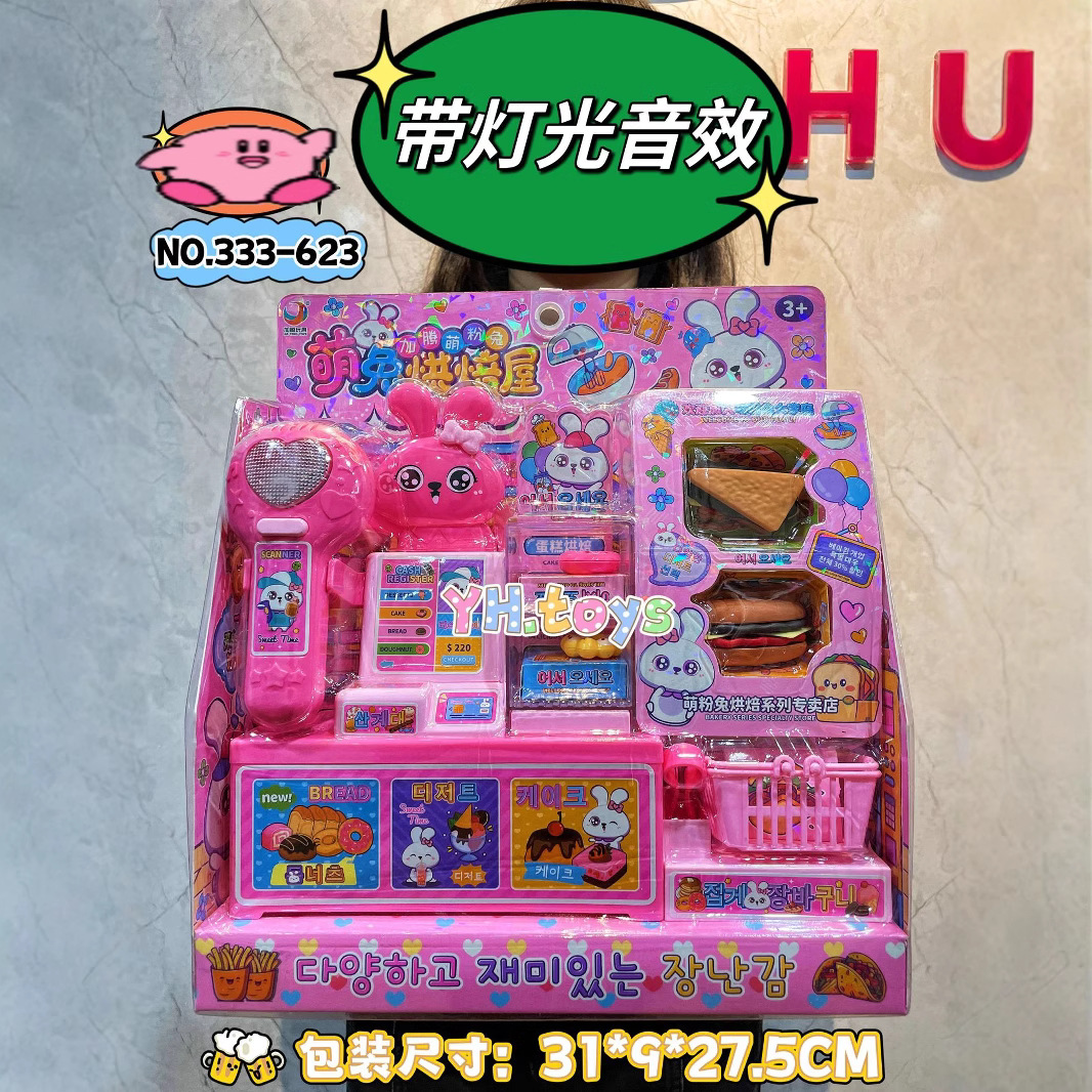 333-623 모에 분말 토끼 미니 캐빈 베이킹 편의점 토끼 현금 등록 소녀 놀이 집 장난감 배치